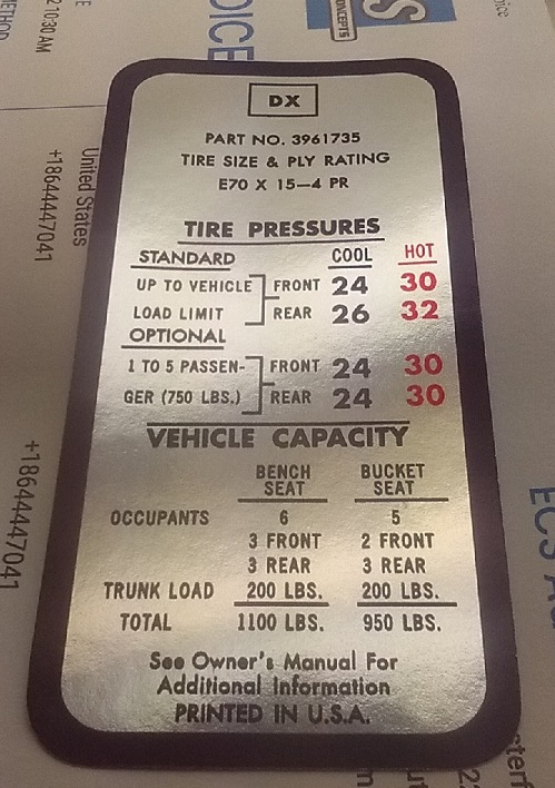 69 Tire pressure decals have been a pet peeve of mine as none were on the correct material or had correct printing.