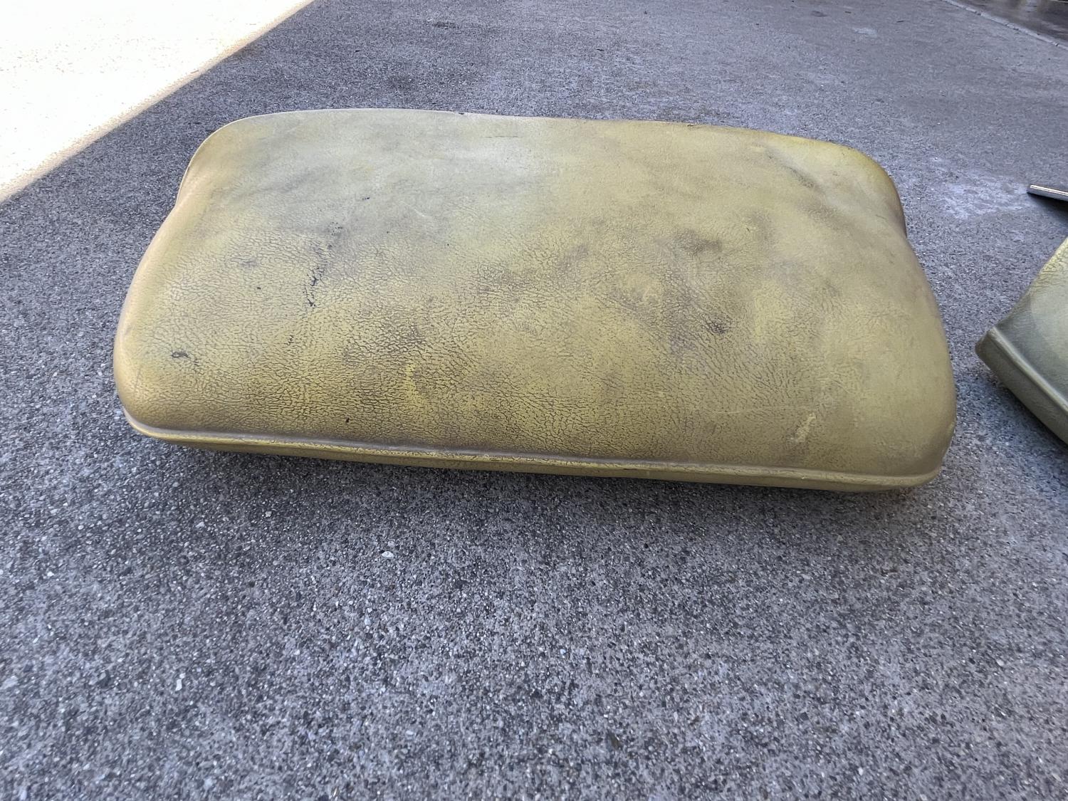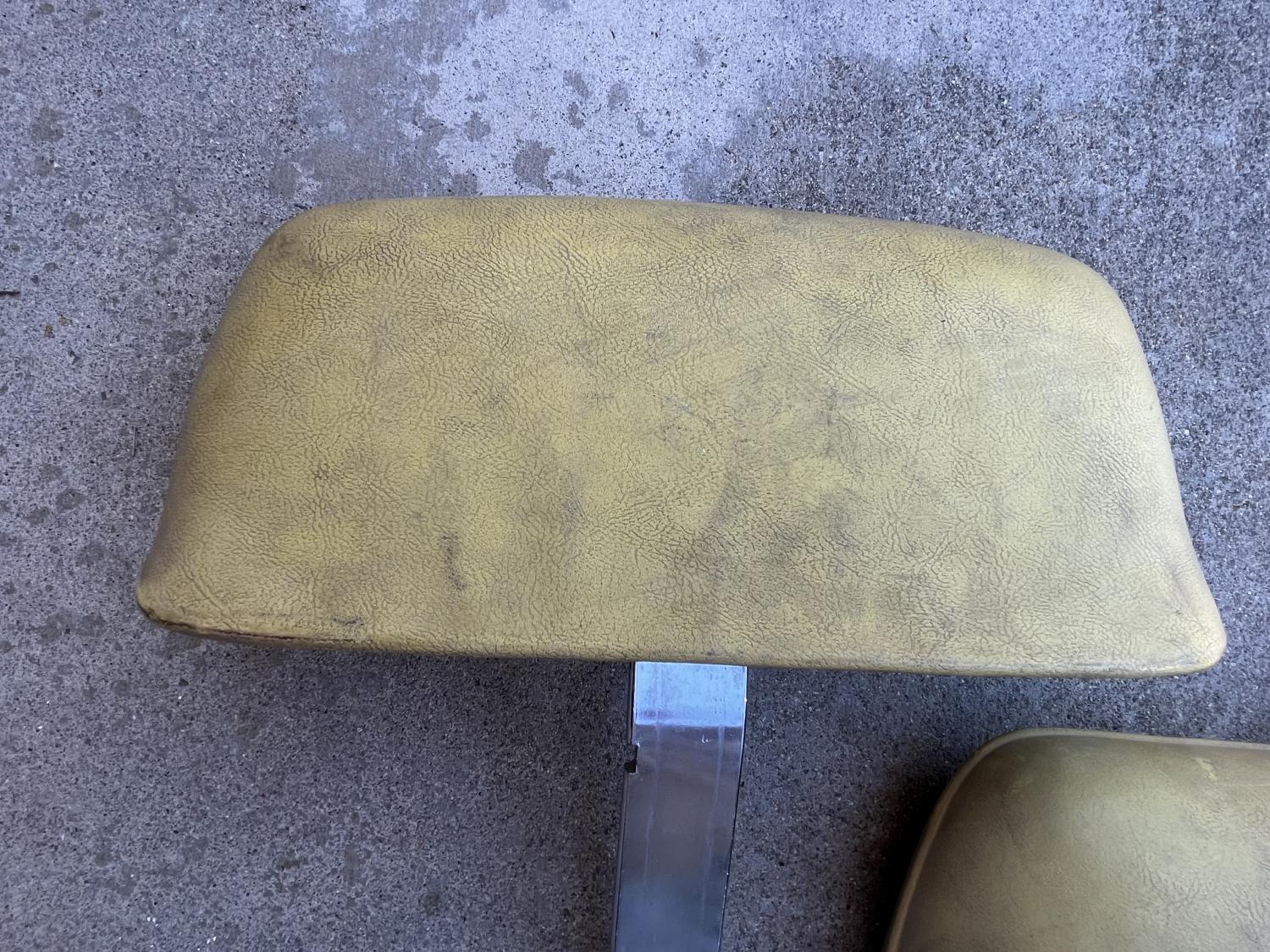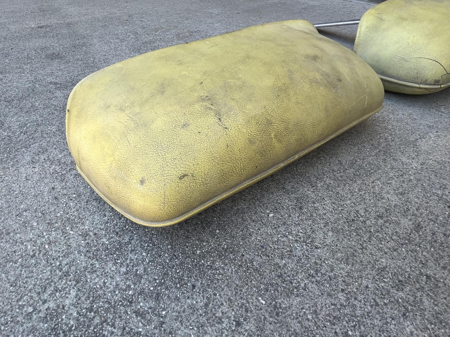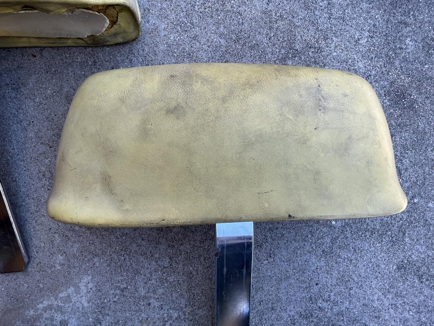 I have a pair of curved bar original yellow headrests for sale - they were off an old local barn find. Both bars are dated 7-30-69. The underside plastic is deteriorating and chalky. The passenger head rest was in the CA desert sun for decades and is brittle - I squeezed it and sure enough, I was the one who cracked it - see photos. They are genuine yellow pieces and could service for a survivor or driver car and will likely clean up a bit with some effort - just be careful on the one - the driver side is not a brittle / crunchy. See several detailed photos below for the whole picture. The last photo is me actively squeezing it to open the cracks; all pieces still there and holding on, no chunks missing. $300 PPG plus shipping. Cheers all, Anthony |