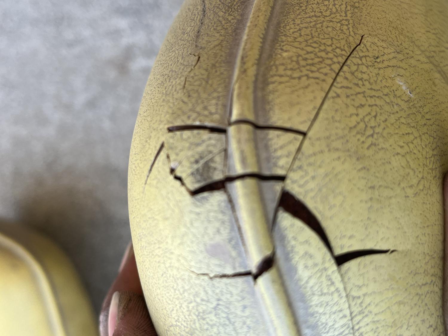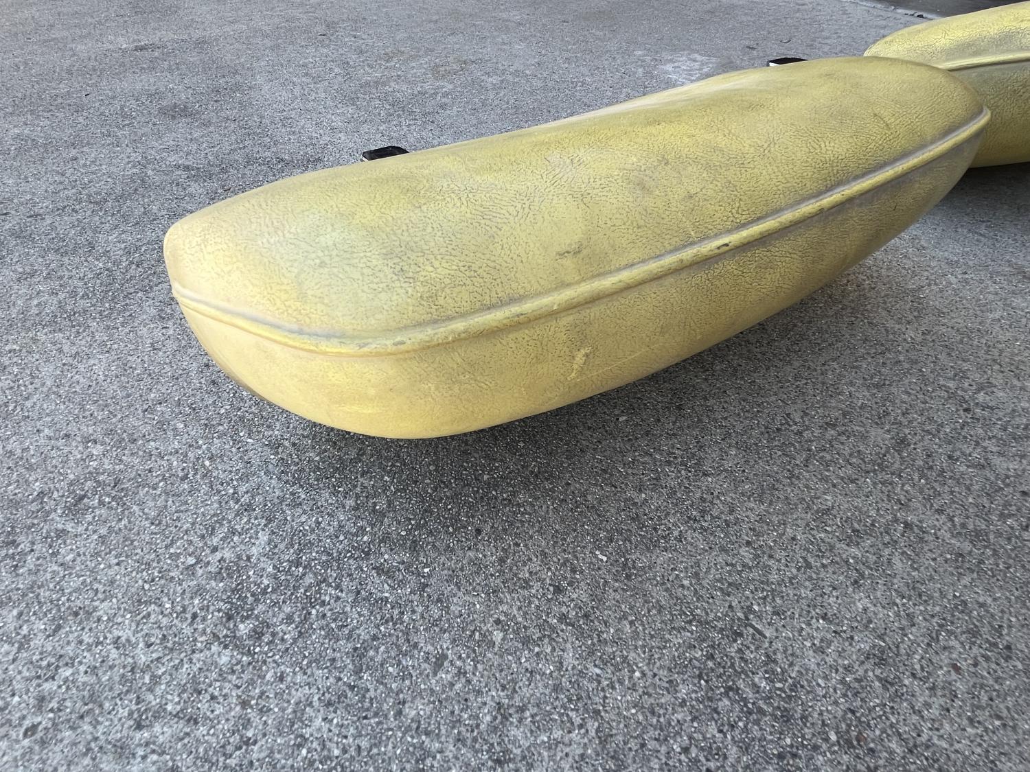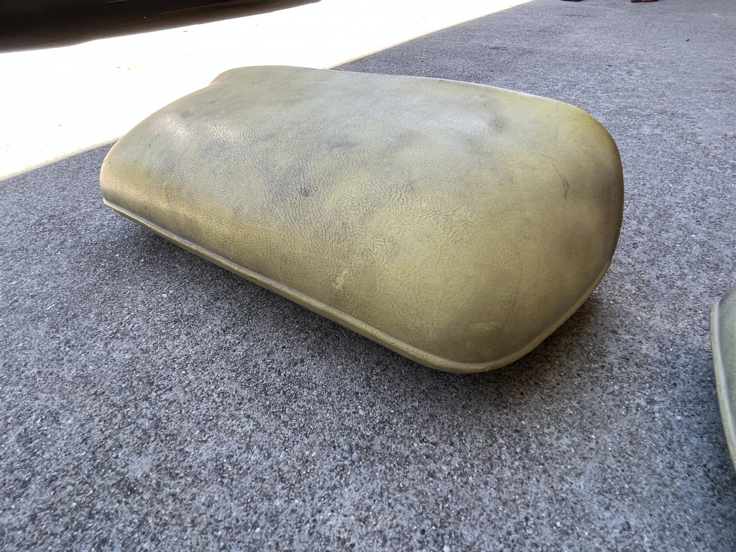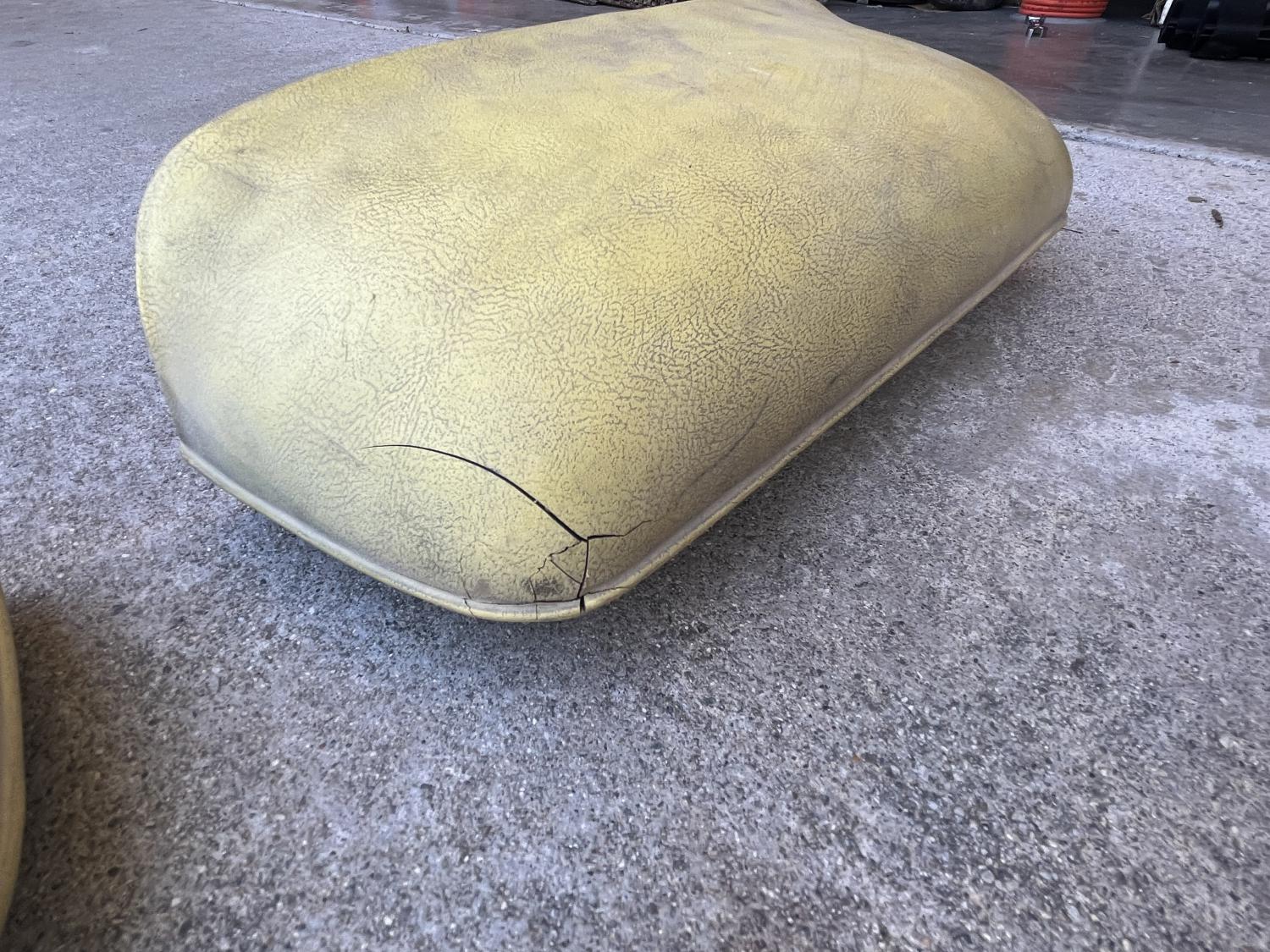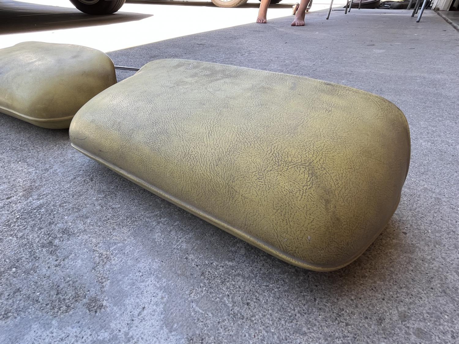 I have a pair of curved bar original yellow headrests for sale - they were off an old local barn find. Both bars are dated 7-30-69. The underside plastic is deteriorating and chalky. The passenger head rest was in the CA desert sun for decades and is brittle - I squeezed it and sure enough, I was the one who cracked it - see photos. They are genuine yellow pieces and could service for a survivor or driver car and will likely clean up a bit with some effort - just be careful on the one - the driver side is not a brittle / crunchy. See several detailed photos below for the whole picture. The last photo is me actively squeezing it to open the cracks; all pieces still there and holding on, no chunks missing. $300 PPG plus shipping. Cheers all, Anthony |