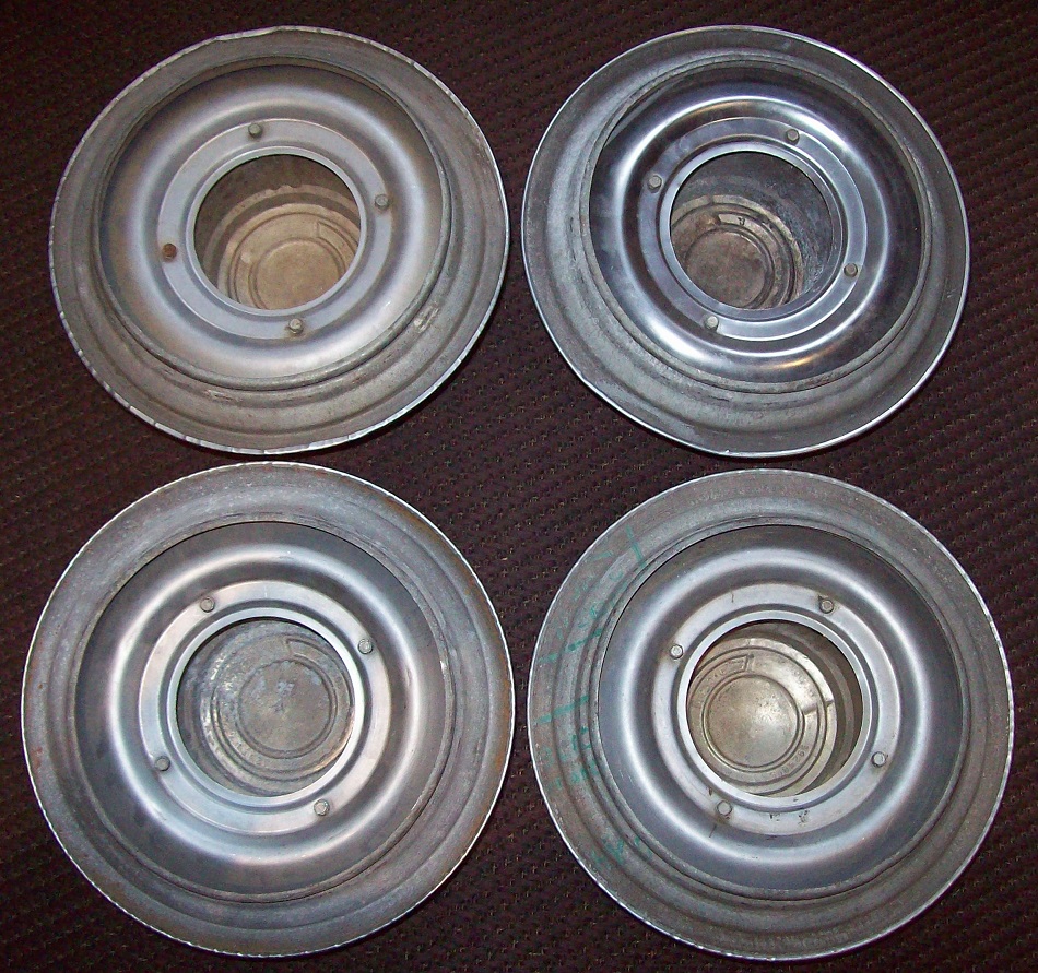 A set of four "SURVIVORS" Rally Caps with the Double Ribbed Construction on the inside of the caps which I believe were assembly line caps. Clearly stamped 3925805 and 552504 CANADA. Perfect for any SURVIVOR car or just a driver. I did not clean or polish them so they may even come out nicer. Photos pretty much cover the condition. $200 USD with FREE Shipping from Canada. Paypal "Friends".