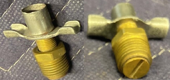 15 Correct GM Petcocks like they installed on the production cars with Handles facing the Motor Stamped 94 with EATON or WEATHERHEAD (Arrow across W in a Hectagon). Also the same Stamp EATON or WEATHERHEAD (Arrow across W in a Hectagon) on 9/16" Nut. These also have the correct extended drain pipe ! -#1 NOS WEATHERHEAD Flat Bottom $125 Each 7 in Stock (now 1 left) -#2 NOS WEATHERHEAD Slotted Bottom $150 Each 6 In Stock ❌ SOLD OUT -#3 NOS EATON Flat Bottom $150 Each 2 in stock ❌ SOLD OUT Tracked Shipping in a Bubble Envelope from Wisconsin $6, Paypal "Friends" We also have a very nice Weatherhead "Survivor" (Last Photo) that we will sell for $75