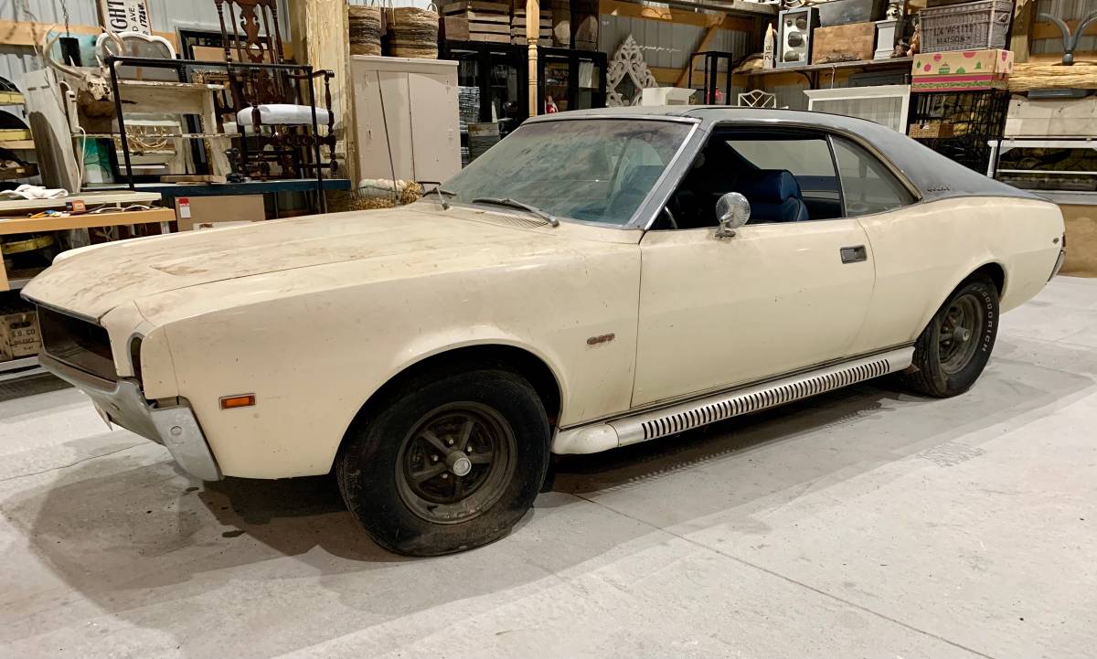 Stored for the last 40 Years. Original Survivor 1969 AMC Javelin SST muscle car with 80k orig miles, Solid Body, Floors and Trunk, Clean Frame rails, 290 Automatic, RUNS, Power steering, Manual brakes, side pipe Exhaust, rear pass side quarter panel extension is missing as pictured. Needs a radiator and brakes, should be completely gone through after the lengthy storage, replacement driver seat back cover found with the car.$18.500 possible trade https://cleveland.craigslist.org/cto/7552600087.html