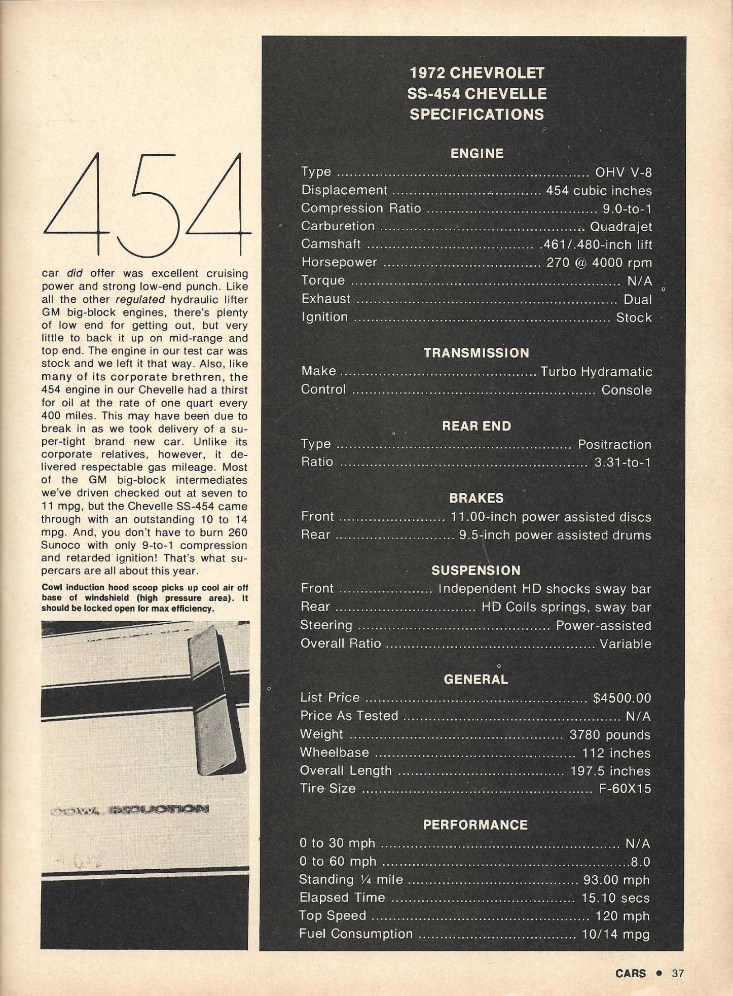The was last year of this style Chevelle. The 454 SS was still offered but government regulations robbed the raw performance Chevelles once possessed. Comparatively it was still a high-performance machine with road manners for 1972.