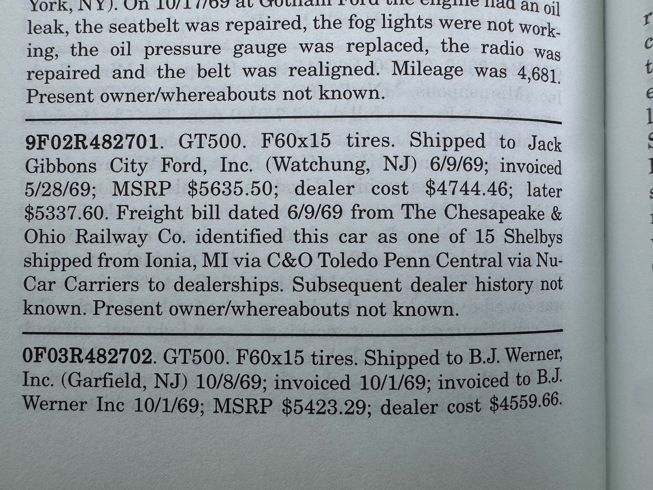 Here they are now if any help to whatever Shelby LFNgo is tracking or whoever may have VIN 9FO28461525 if it exists today.