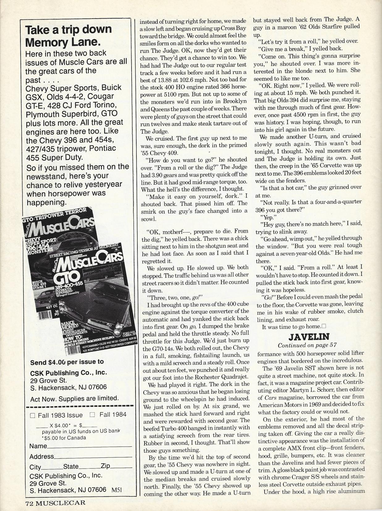 The is a great story by Joe Oldham as he was introduced a pre-production Judge (RAIII) to the NY street racing scene. Joe really made a story come alive....