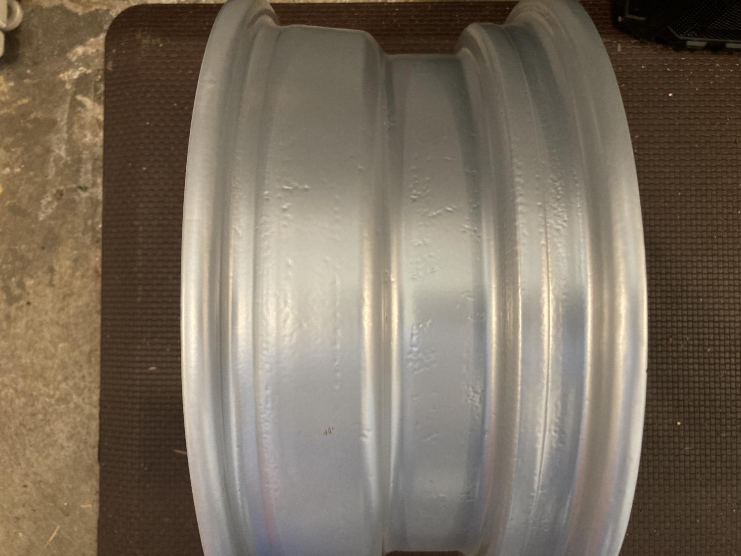 I ended up with an extra DG wheel after we put a set of 5 together. This one is a pretty good wheel, but suffered a bit of pitting (looks like it was on a car with a flat tire for a while). Previous owner stripped and powder coated it, said it sealed up fine prior to refinishing. I’d probably do a little filing and sanding and shoot it with black and argent. Asking $120, which is less than half the going rate for good DG’s. Buyer pays actual shipping (FedEx Ground or UPS, your call) I already have a good 15x15x7” box ready. Thanks!