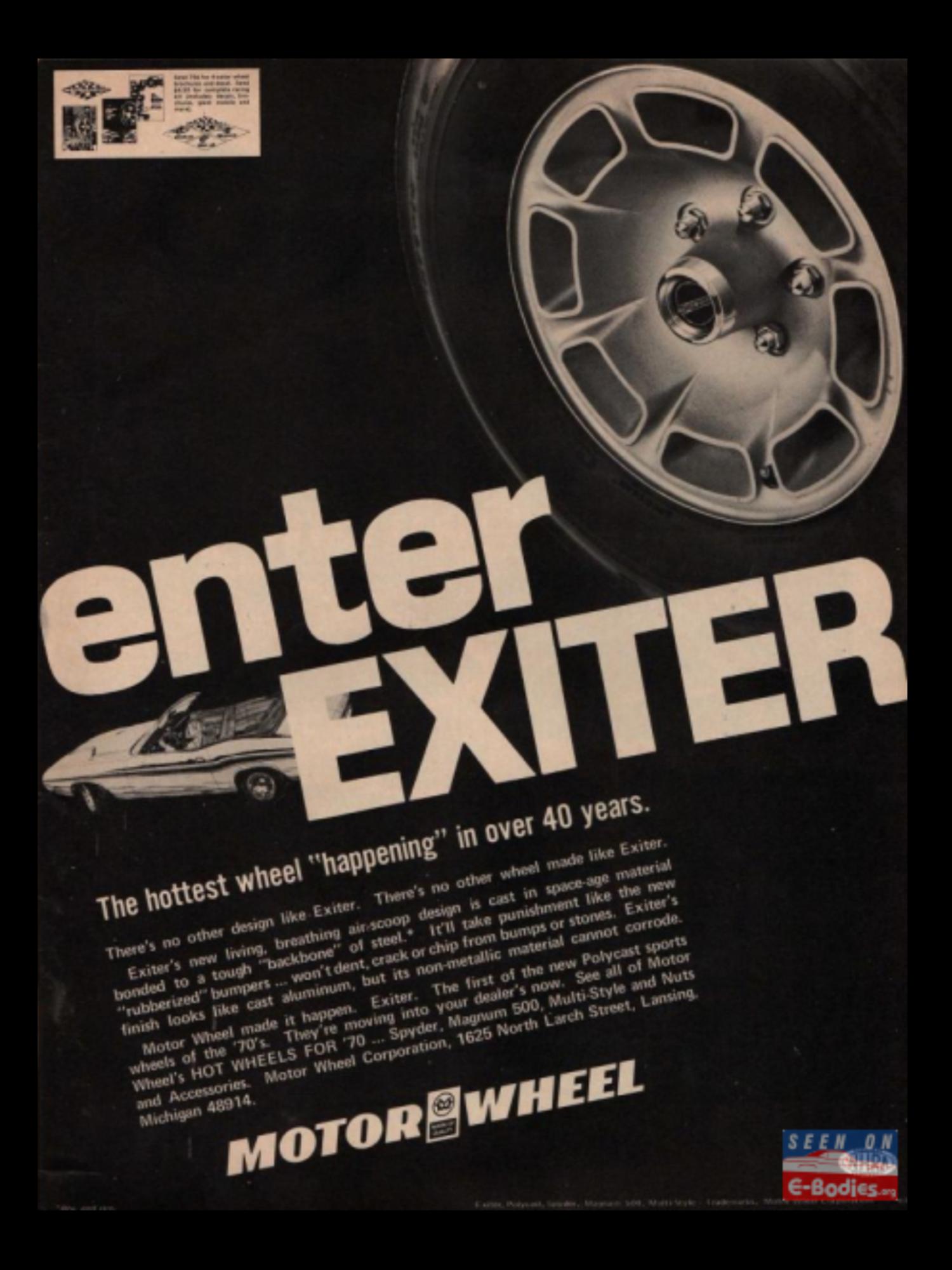 They are Motor Wheels. I had these on my 1969 Buick GS 400 Stage 1 back in 1972> Lynn, as far as the lug nuts, I remember them having red center caps on all the lugs, and were longer than the standard acorn nuts. I wish I could blow this up to verify my memory is not completely Shot.... Yet. Bill