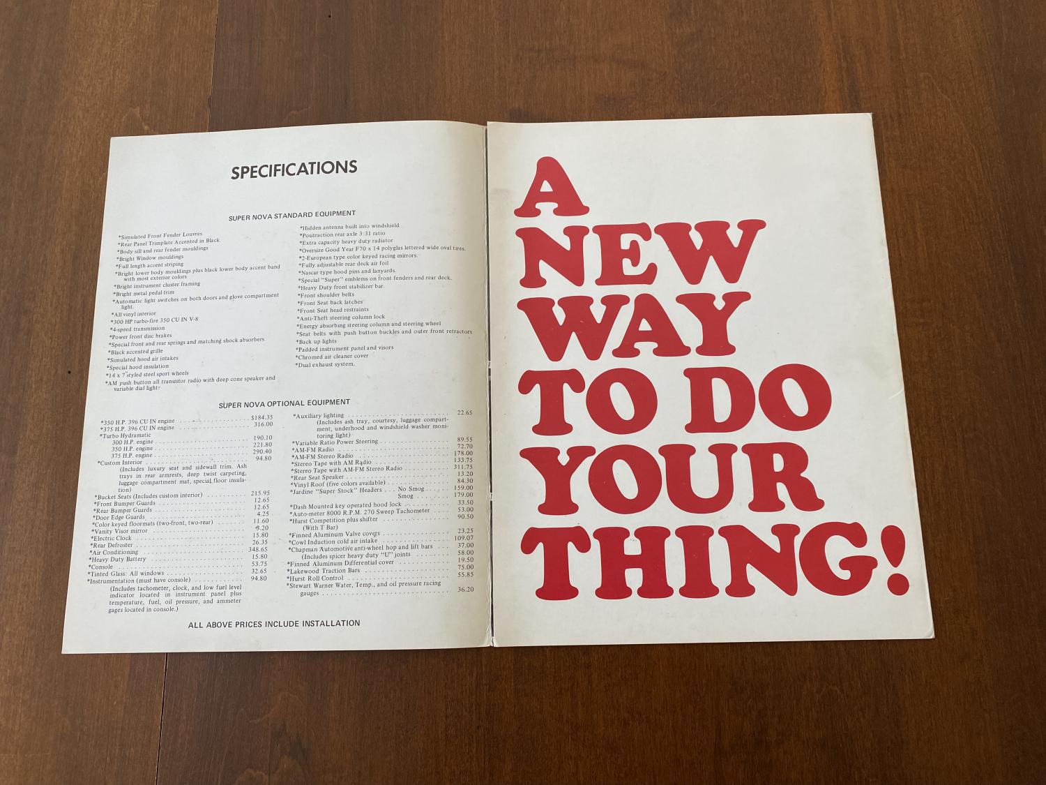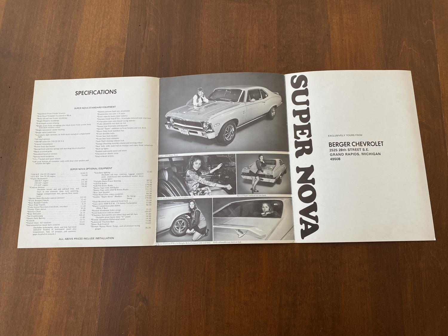 For sale is an excellent condition, original 1970 Berger Chevrolet Super Nova pamflet Brochure. Super cool and rare piece. Pics say it all.