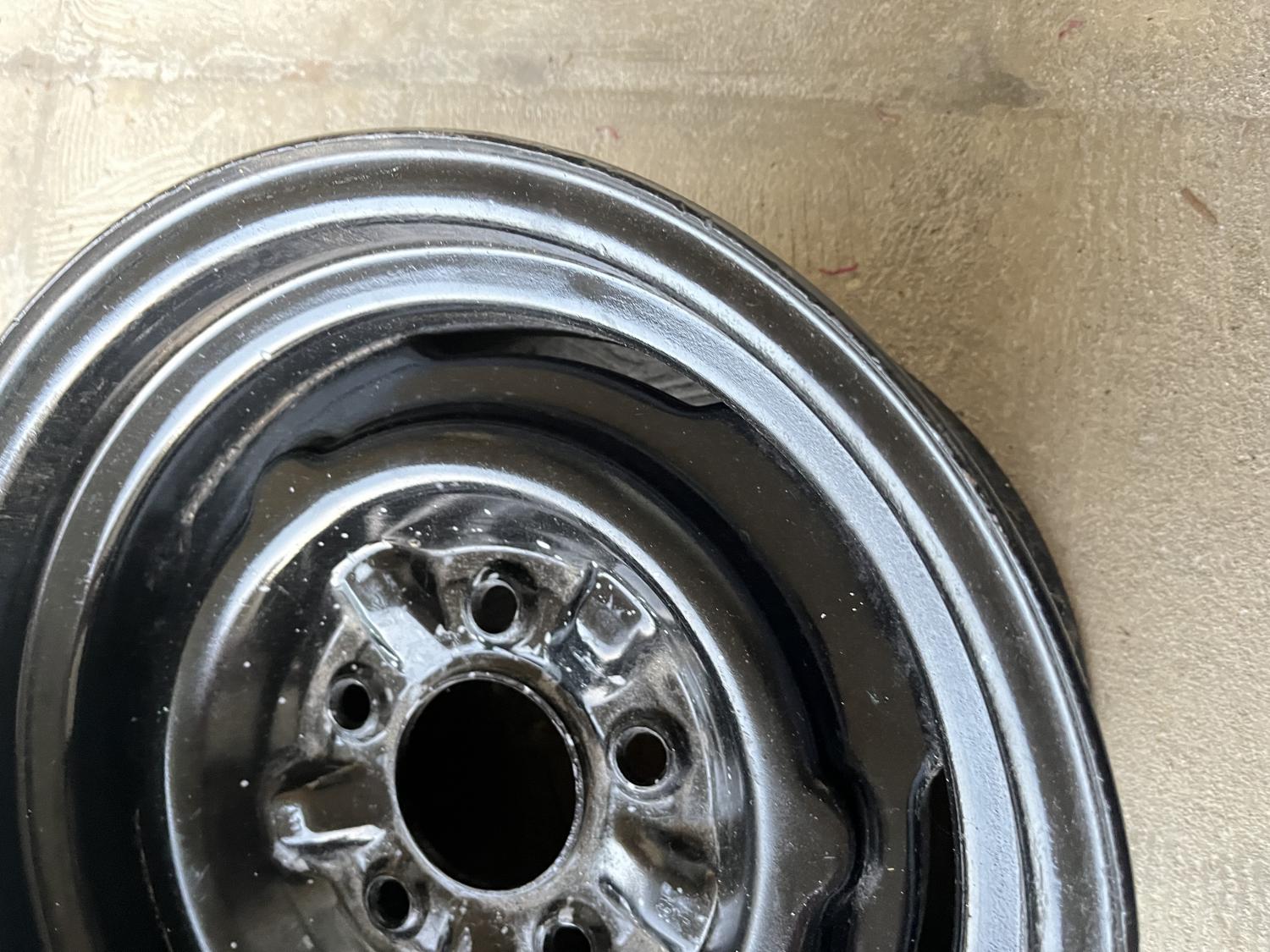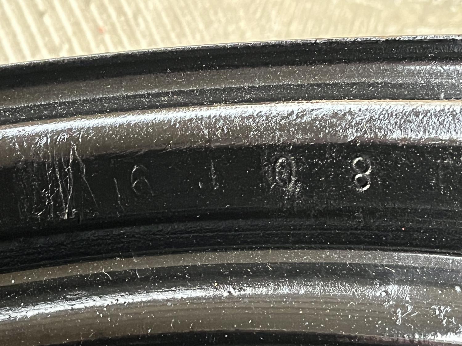 I have one single NT (Norris Technologies) 14X7 disc brake steel wheel available here. Valve stem code is IF (NOT XT) but it is identical to those. Some say these were Firebird standard wheels, or VN / Van Nuys / LOS / Los Angeles built SS Camaros - there are documented cases... These, I believe, were dated on the rim lip ddmmy and I can see 8019 - the leading digit isn't obvious to me, so my best guess is January X8, 1969 - either the 8, 18, or 28 of January is the likely date if you're concerned. Anyway, a cheaper alternative to the more popular XTs. It was the spare from a car being restored and was shot with a recent and quick amateur black paint job, the spotting is rubbing compound residue. The backside is untouched and original IMO and suggests an original black wheel - so maybe it was a full wheel cover rim? Or from a black car maybe. There are scratches from hubcaps or trim rings or both as shown. Either way, it has a few minor nicks and scrapes of course and would need some restoration work to be perfect, but all in all it is very presentable as shown. 250.00 PPFF plus shipping & insurance if wanted. Cheers all, Anthony |