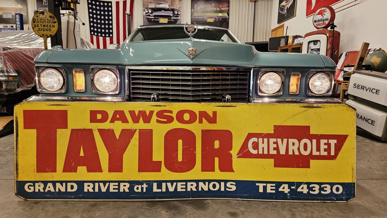 About 5-6 years ago, I purchased an incredibly cool Dawson Taylor dealership sign. Dawson Taylor has a rich history in the sale of high-end Corvettes and Chevys at their Detroit dealership during the peak of the muscle car era. My understanding is they're the dealer who sold the famed '67 L88 Corvette convertible raced by Tony DeLorenzo. Cool piece of history.