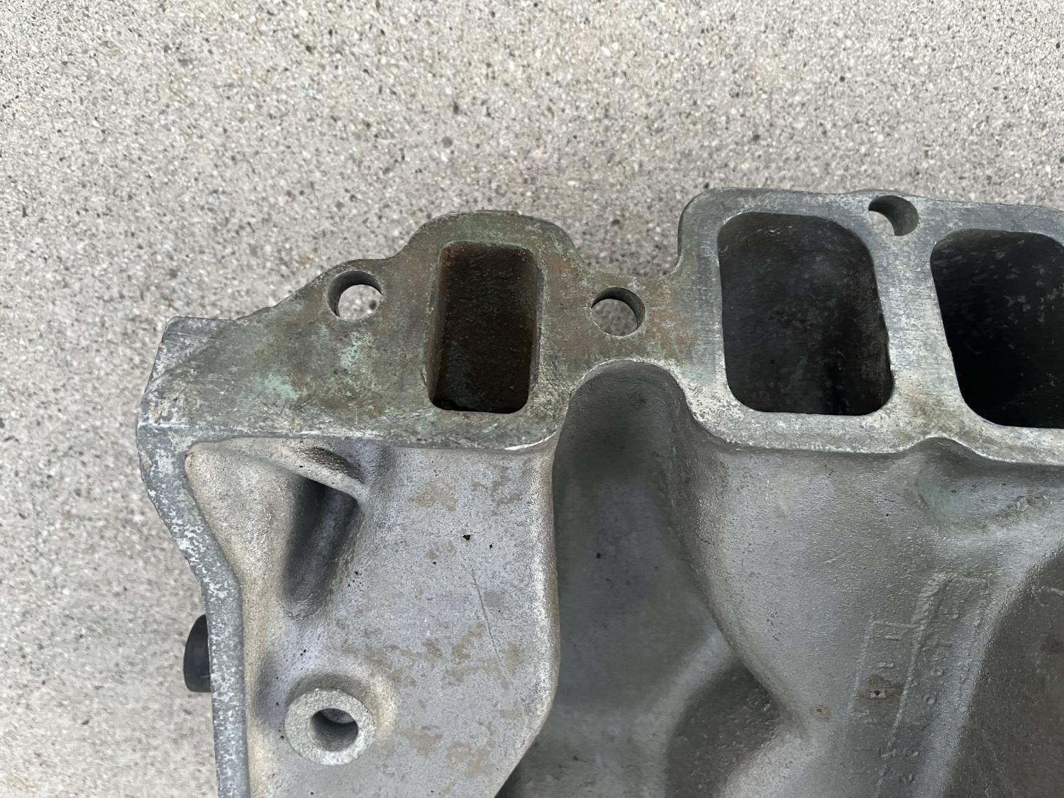 A square / rectangular port big block Chevy BBC intake. It is used but no issues that I see. Review the many photos below. The water / thermostat opening is particularly nice on this one, often they are corroded. The date is 1967, the day looks like 13, but the month needs some imagination... 5 maybe? I'm not sure. The cast part number is 3919851 - is on a raised pad; I've seen that on experimental leading 0 part numbers in the past... In any event, I believe the consensus is that this is an OTC GM unit, maybe affiliated with the L88 cars maybe? Sure is a cool piece. 800.00 PPFF please Thanks all, Anthony |