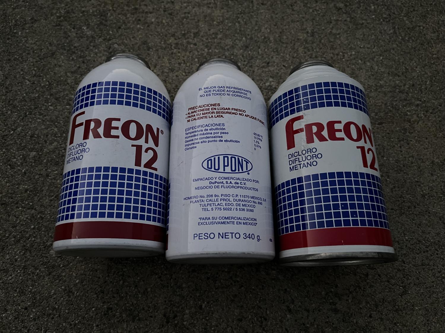 I have some more NOS R12 / Freon available - must be shipped ground, so will have to go FedEx FYI. some 14oz and some 12oz cans available as shown below. Sercon DuPont And please remember, by law, only trained & licensed professionals should deal with evacuating and or filling R12 systems; for the sake of the planet! 2.50 per oz PPG plus actual ground shipping charge. so 14oz cans are 35.00 and 12oz are 30.00 - just let me know how much you want. (340g = 12oz) Cheers all, Anthony |