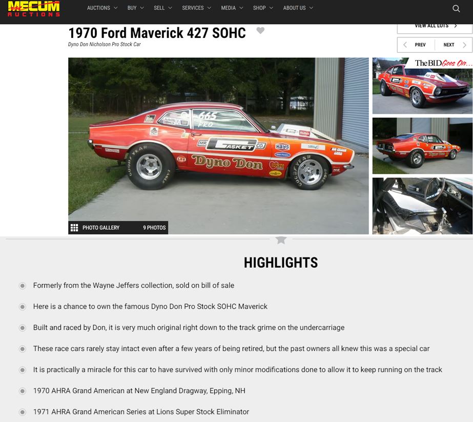 there is a Dyno Don Nicholson Pro Stock Maverick on the Mecum auction site