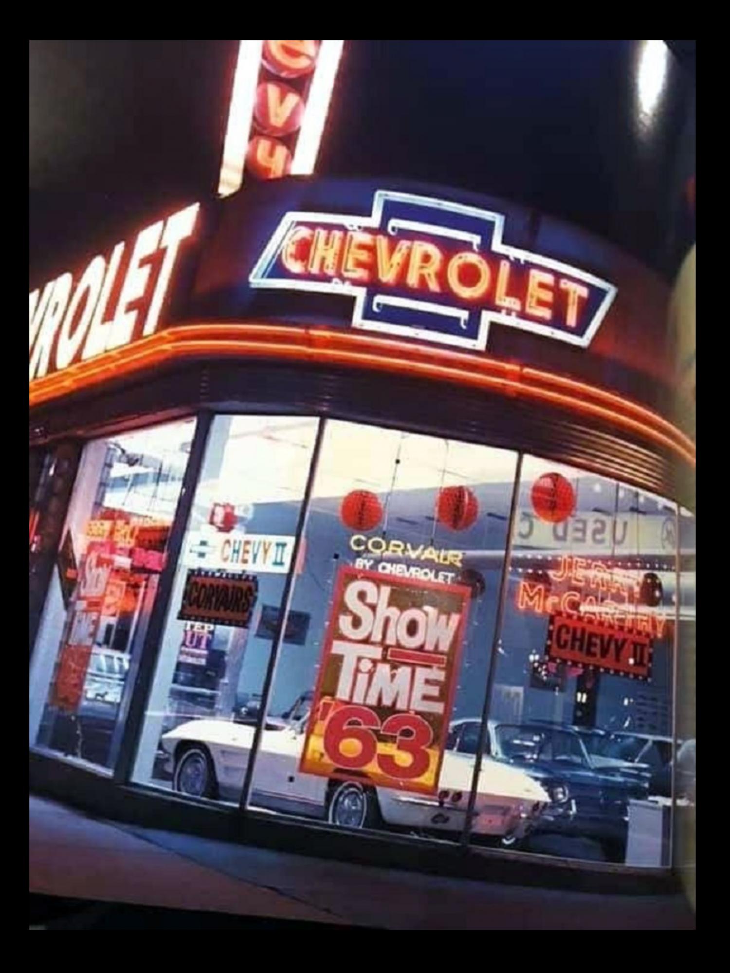 A couple cool night pics from 63/64 when still McCarthy Chevrolet before Bill Markley took over. ![]() ~ Pete .