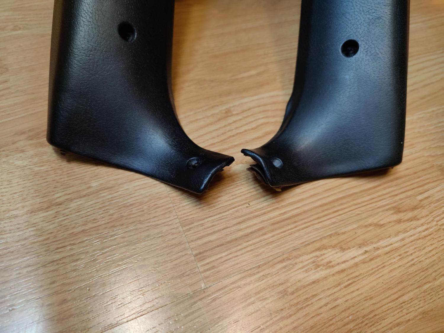 Selling a pair of black assembly-line A pillar post trim pads for 1969 Nova coupes. These are the original vinyl-covered type with a foam and steel core. These are in extremely nice shape. No cracks or splits in the vinyl. The steel cores are not rusty. There is some light separation of the steel from the foam at the top, but once these are installed the trim screws will easily cinch this down. I did not clean these up or put any vinyl protectant on them. Steel ones for 70-72 regularly sell for $400 a pair. I have these priced at $600 for the pair since they are nearly impossible to find in this condition. $30 shipping to most US locations.