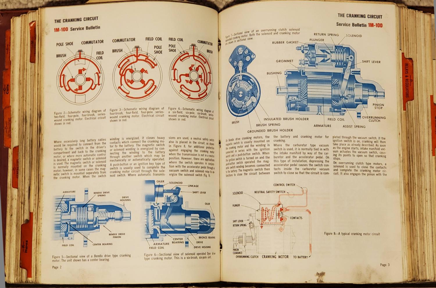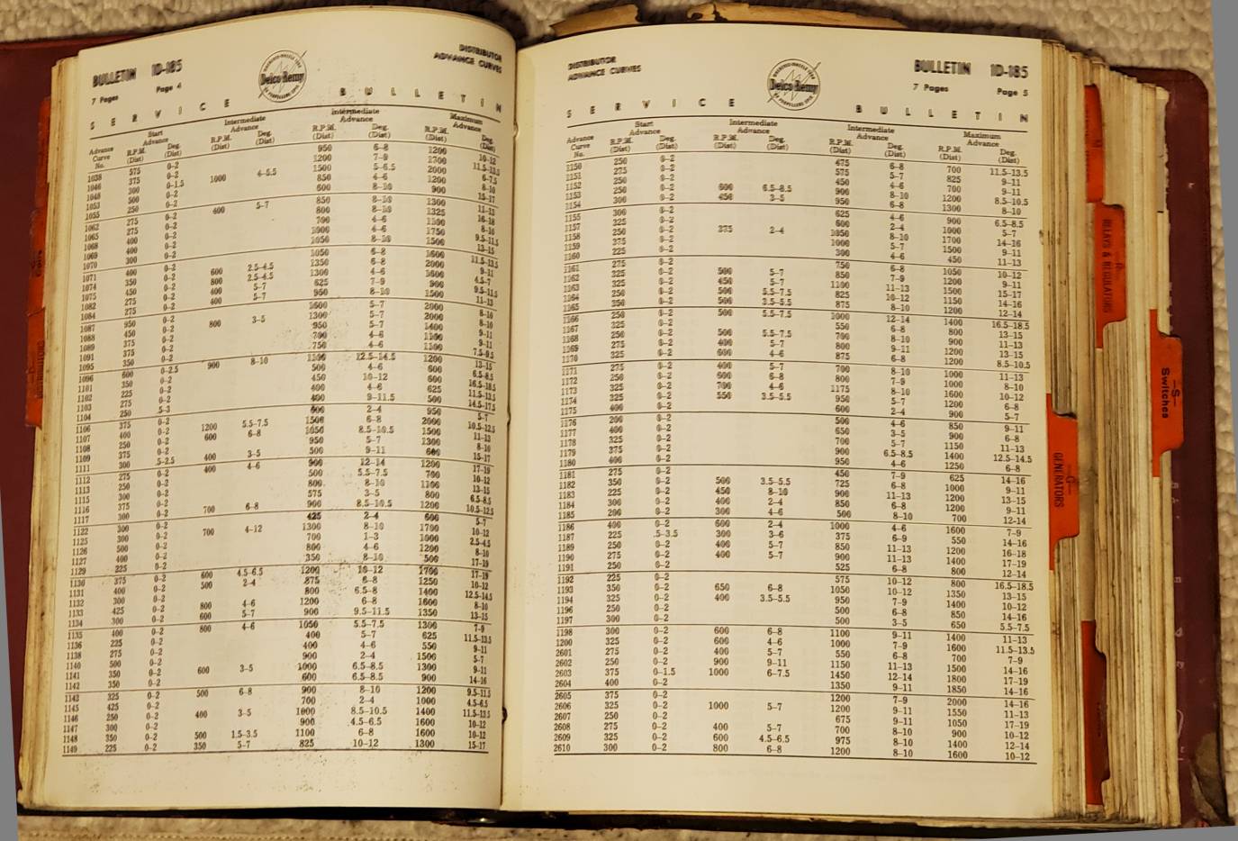Full of bulletins and specs and technical info. They just kept adding the new bulletins and didn't remove the old ones. Covers the 50's (earliest I saw was 1949) thru the 60's. Coils, distributors, alternators, starters, regulators, etc. $30 plus media shipping
