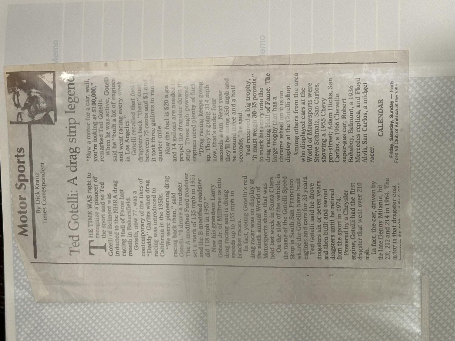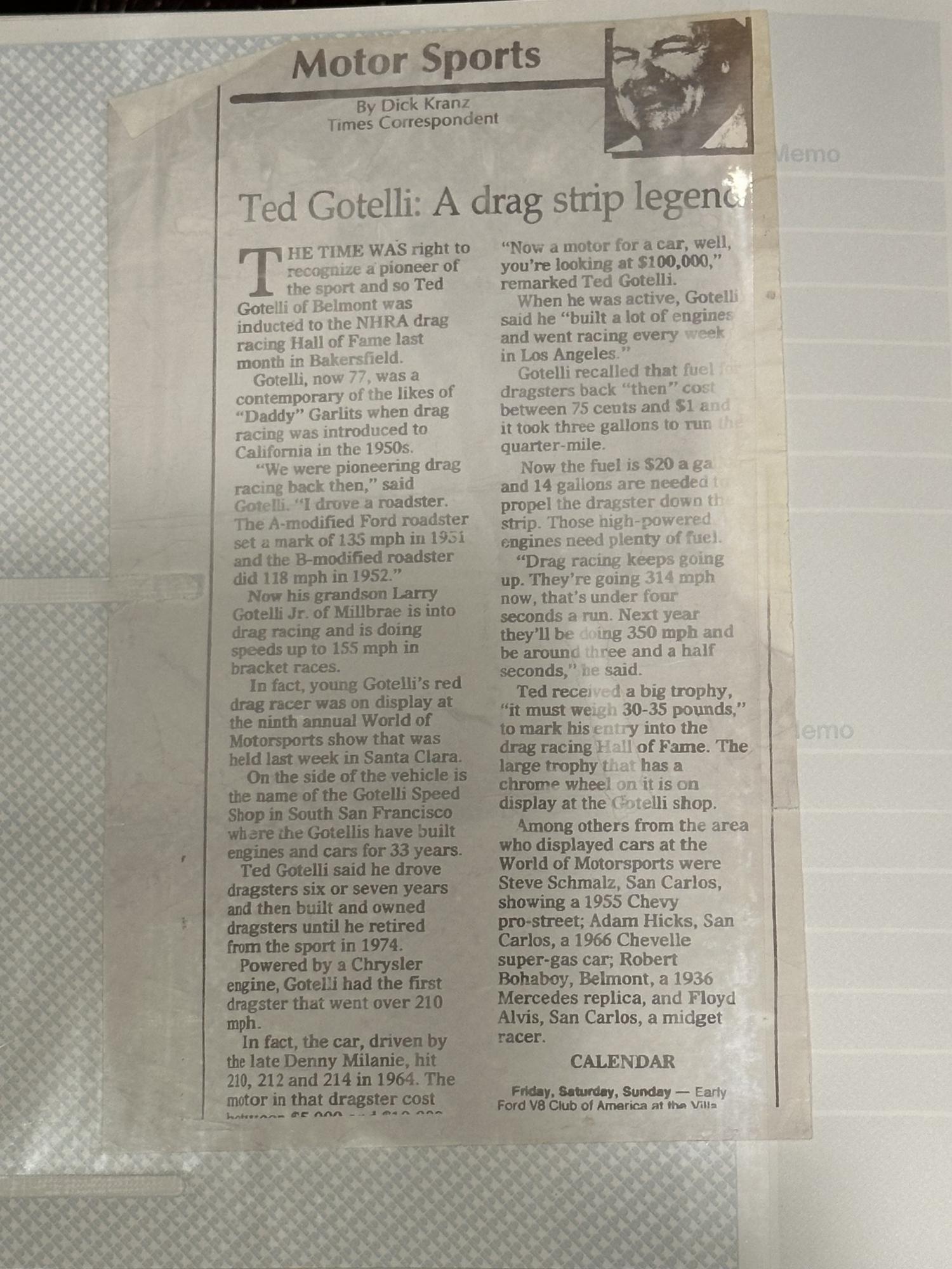Great guy, great kids and grandkids. Mr Gotelli’s son brought me the article and a picture of his car. Anyways, thought I would share as I just found it in an old scrapbook. |