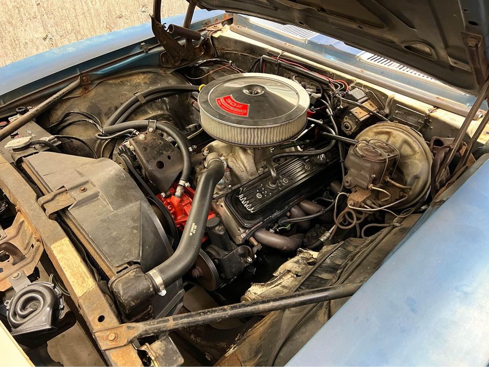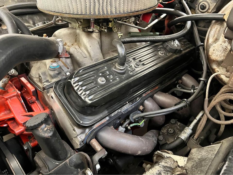 The motor has aluminum Vortec Heads, dual plane Edelbrock intake. Compression ratio is 9.6:1.