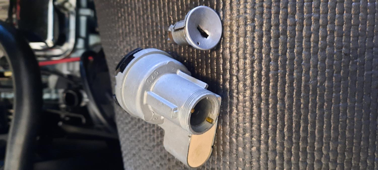 The original ignition switch on my '67 GTO gave up the ghost. I bought an OEM replacement switch. The key cylinder was removed from the original switch prior to disconnecting it. (pic below) Problem is, I can't get the key cylinder to seat properly in the OEM replacement. The process for removing the key cylinder from the original switch involves turning the ignition switch to the accessory position (to the left) then inserting a small pick or paper clip into the release hole on the cylinder and the cylinder will release. Then the dash bezel can be removed, the key cylinder removed and the switch replaced. Replacement of the switch and key cylinder SHOULD be pretty much straight forward, but I've had no success getting the key cylinder to fully seat in the switch. Has anyone here done this successfully?