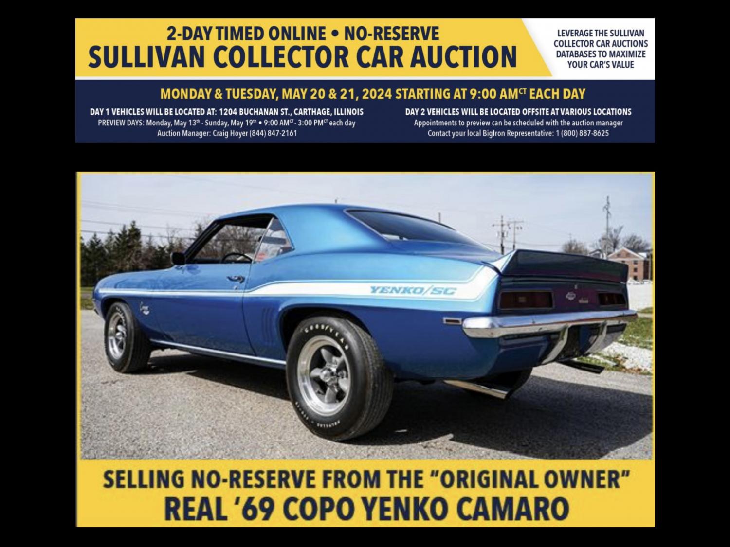 https://sullivanauctioneers.com/auct...ource=hs_email Not a very good web page, and painfully little info provided on the cars. You have to scroll down and click on the flyer at the lower left to even see the Camaro.
