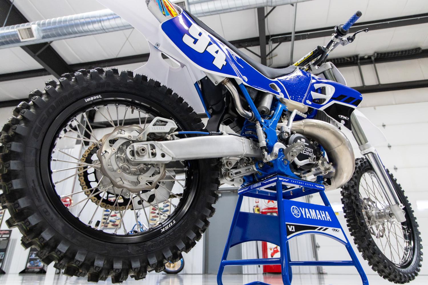 It was outfitted with new Pro Taper SE handlebars, Pro Taper handlebar pad, Pro Taper blue soft grips and ASV collapsible black levers. The front forks were completely rebuilt and reconditioned. The rear shock has all new internals, bladder, seals, bumper and Race Tech blue spring. The entire braking system was gone through including a rebuilt Yamaha master cylinder, Galfer braided lines, Galfer rotors, Nissin calipers, new cables and pads. The OEM wheel hubs were vapor honed with new bearings, new hoops and new spokes. It rolls on Tuck Impact black wheels that are 21x1.60 on the front and 18x2.15 on the rear. The wheels are wrapped with new Dunlop Geomax MX33F tires that are 80-100-21 on the front and 110-100-18 on the rear. It's equipped with a Pro Taper black rear sprocket and Renthal gold chain.