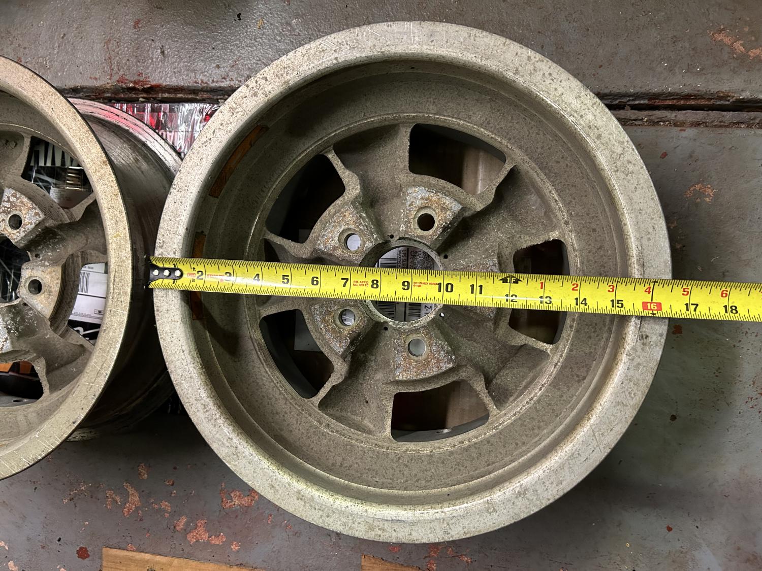 Beautiful original pair of E-Ts, 4.75” BC, removed and stored away in 1969 and it shows. These clear 4-piston discs with no spacer required. Caps not included but screw holes are perfect. You won’t be disappointed. $650 plus the ride, I’ll pack super carefully.