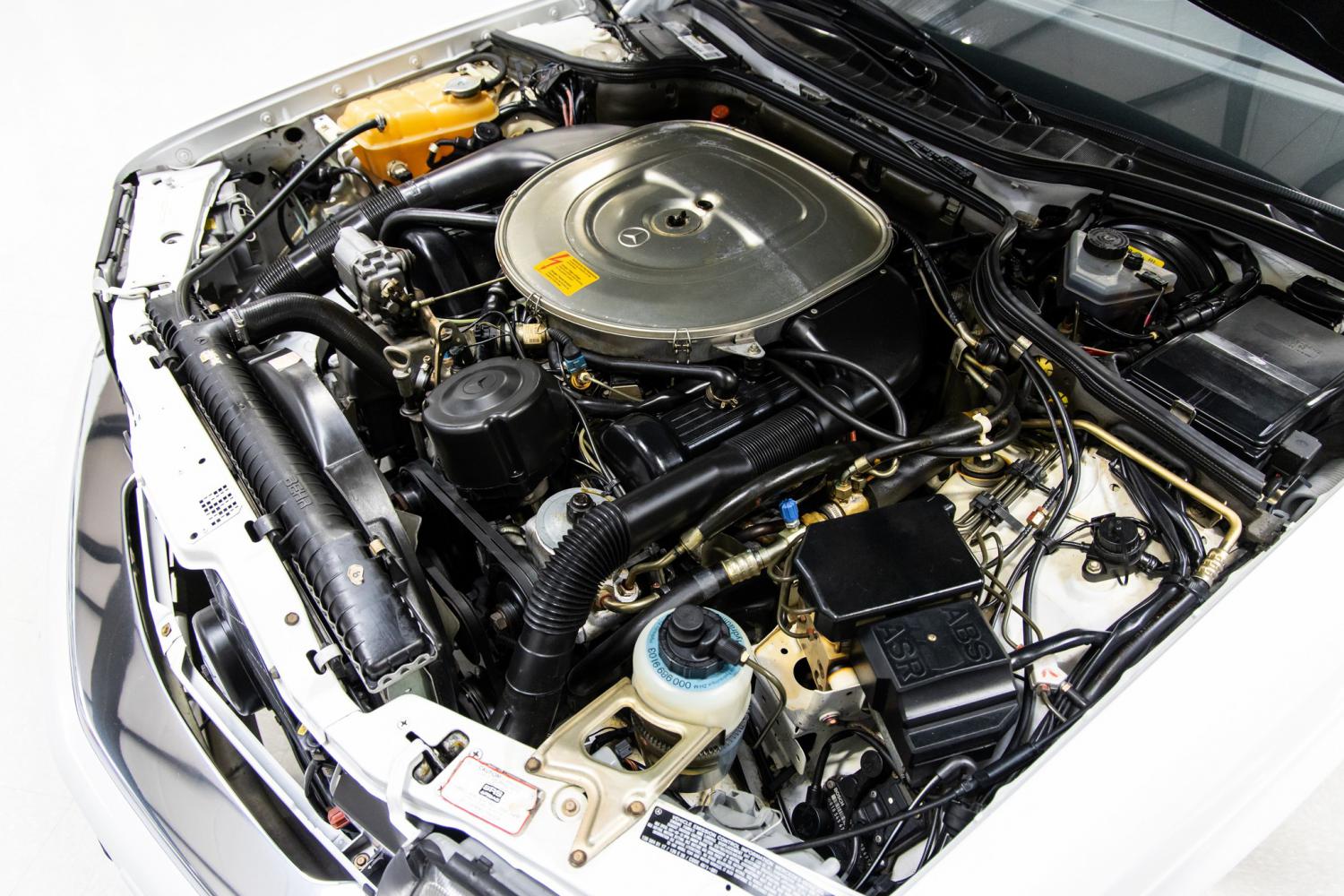The exterior of this example is truly remarkable especially considering its 33 years old. The beautifully designed body is free of any dents or dings. The factory original Arctic White paint is in excellent condition and was recently detailed to a show quality shine. The paint was tested with an electronic paint meter by MS CLASSIC CARS and it passed as factory original as shown. The Arctic White is complemented with its factory original Gray painted accents found on the mirror covers, front bumper, door handle covers, lower cladding and rear bumper. The factory equipped power sunroof and antenna are both in working order. It retains all of its factory stamped original glass of which is the rear window was tinted. Everything on the exterior is in excellent original condition such as the aluminum glass trim and body moldings, chrome grille, headlights, front bumper, taillights and rear bumper. The car rolls on authentic Mercedes-Benz AMG monoblock 17” wheels part #HWA-2024010102. The wheels are wrapped with Continental ContiProContact tires that are 215-50-17 on the front and 245-45-17 on the rear. From the information gathered the tires were replaced in 2020 and have roughly 2000 miles on them. A Viper keyless remote system was added at some point and it's in working order.