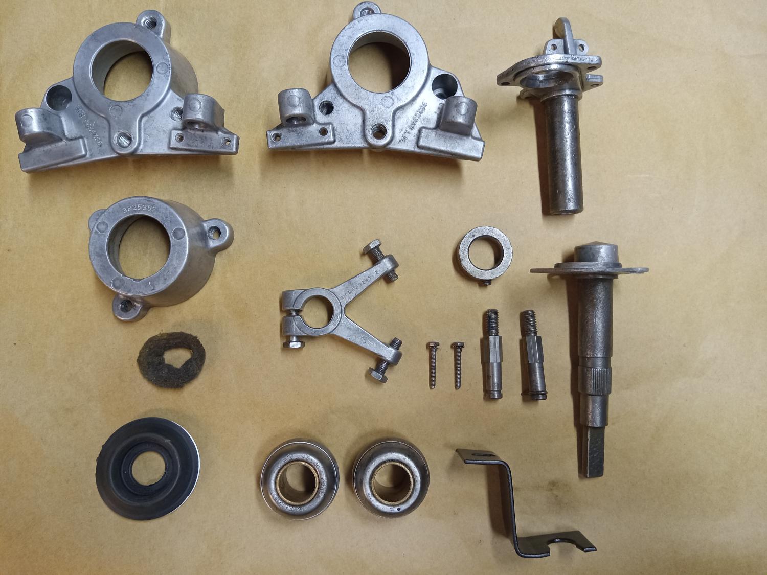 All these parts are original GM parts. RH inner support #3825356, LH inner support #3825355, LH outer support #3825357 with rubber retainer metal and felt washer, 2 bearings (steel with brass), 1 head light "Y" stop with two bolts, 2 head light motor studs one with stud clip, 1 head light motor bracket, 1 end collar spacer with set screw, 2 head light motor limit switch screws, 1 LH pivot inner, and 1 LH pivot outer. $260 for everything plus shipping. I can deliver in Corvettes Carlisle with no shipping charge. I also have 2 rebuilt head light motors one dated 3-66 the other has no date.
