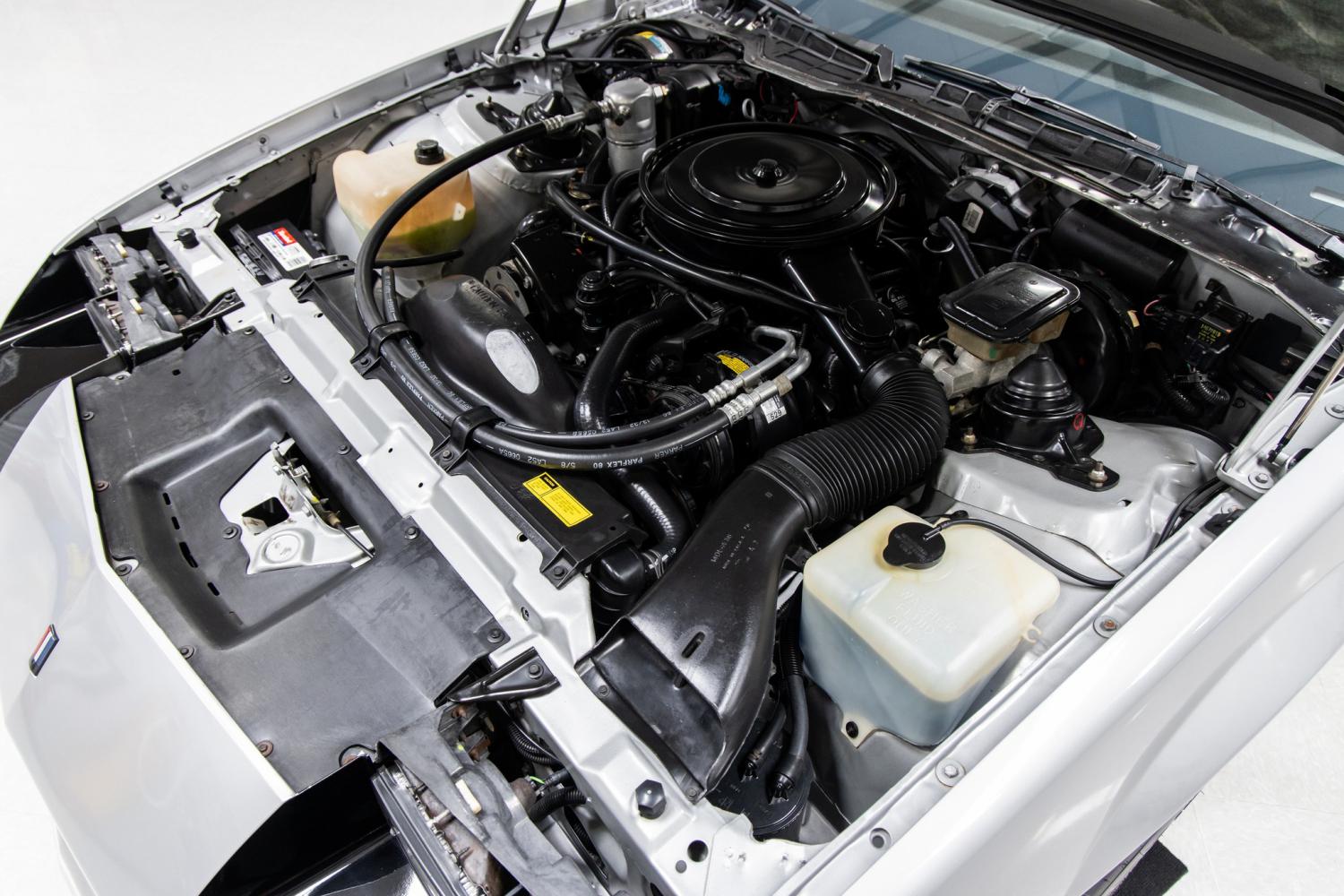 The engine compartment is nicely detailed throughout. It retains all the factory original stickers and assembly paint marks. There are no signs of oxidation or deterioration. The hood insulation is fresh in appearance and the hood light is in working order. The car is powered by the 5.0L (305 cid) 4-bbl V8 engine that runs excellent. The black air cleaner is very cleaner is in excellent condition. The hoses and rubber seals are soft and pliable. The engine is coupled to the automatic transmission with overdrive and limited slip differential.