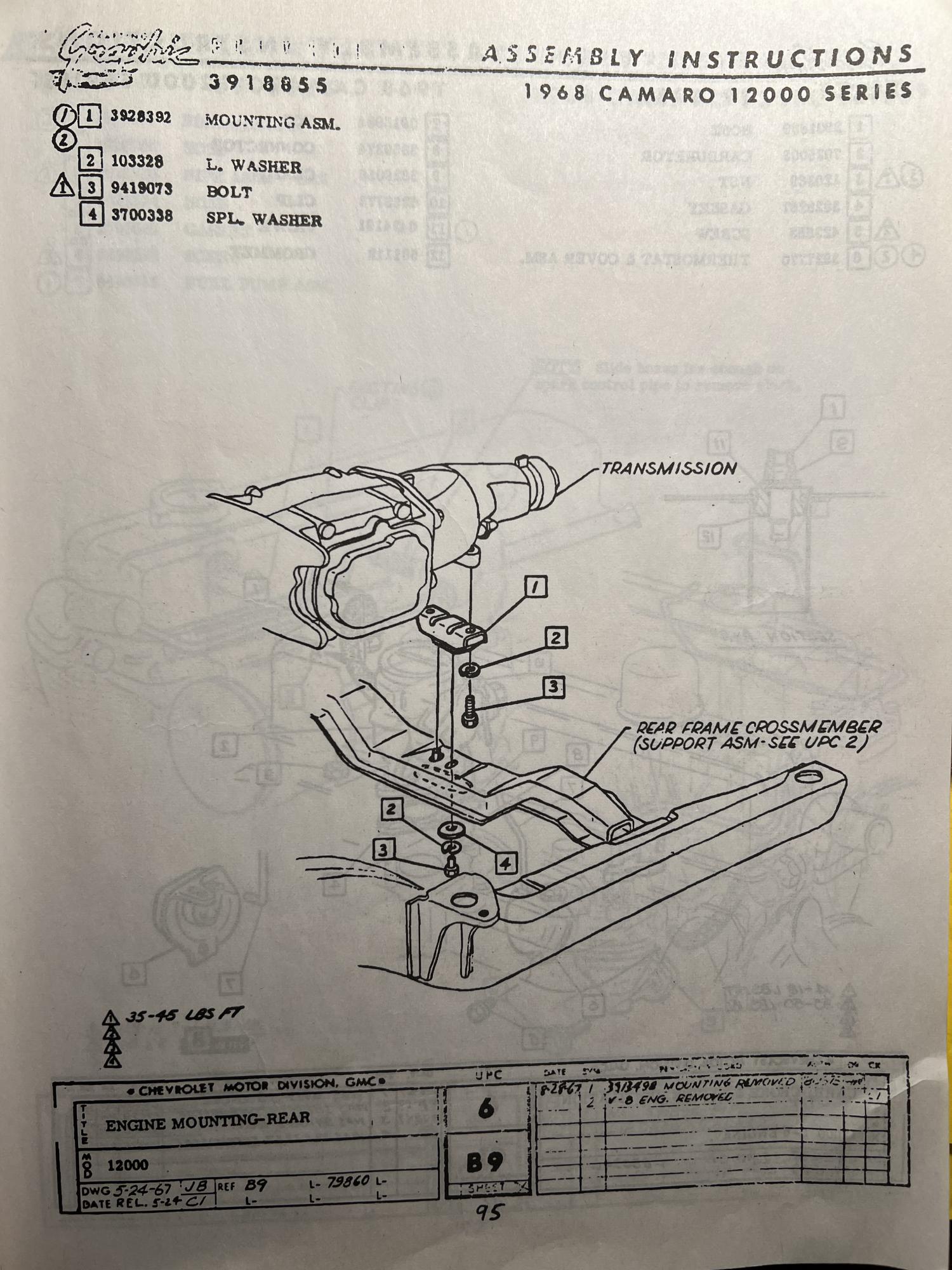 I'm searching for original rubber motor mounts and the motor stands for a 1968 base model Camaro with a 327/210 hp with no a/c. They need to be in good/excellent condition for judging at the Concourse level. Any advice on where I might be able to find them would be greatly appreciated. I believe the front motor stands are GM part number 3928391 and the rear are GM part number 3928392. Please see the attachments from the Legends Judging Manual for 1967-1968 Camaros and the 68 Camaro FAIM for more information. Many thanks. Tommy68