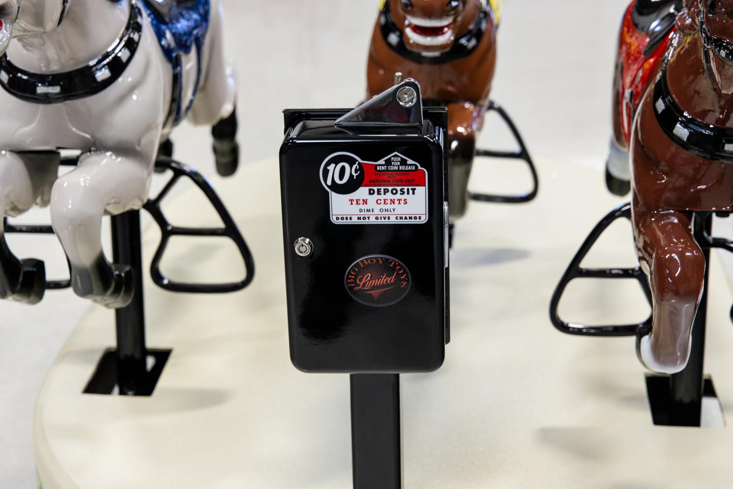 “These seldom-seen vintage three horse race coin-operated children's rides always attract a crowd. Matter of fact, a Carousel International Kentucky Derby Horse Race Ride example is currently on display in the Kentucky Derby Museum. A western themed example sold at the Barrett Jackson Auction for 63,250.00 in January of 2022. In my opinion, this is the best restoration of a three horse race ride ever completed. If you're a vintage coin-operated children's ride enthusiast and a horse racing enthusiast this is a must have piece of memorabilia!” – Marc Schiliro