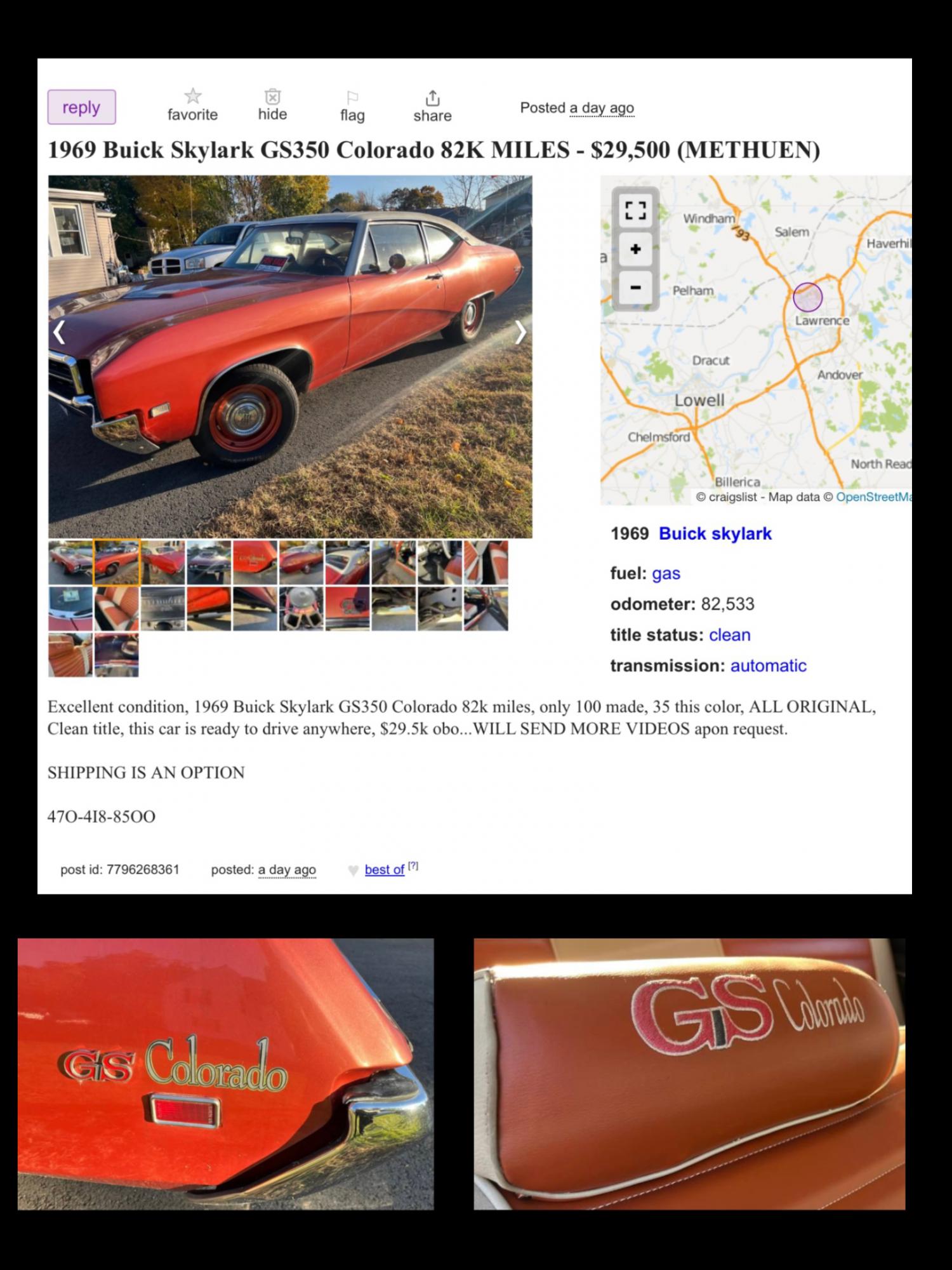 1971 Boss 351 , 17,000 miles .. 1971 Buick GS455 .. 2003 SVT Cobra .. 1971 GTO .. 1969 Camaro Fathom Green .. 1969 Camaro Hugger Orange .. 1970 Buick GS455 .. 1970 BUICK GS350 .. 1998 SVT Cobra 1900 miles;. 1973 STAGE 1 GS . 1971 Mach 1 351C 4 speed , first car. 1970 Mach 1 428 SCJ . 1970 SS 350 Camaro . 1971 442 ... 1968 Buick GS400 . 2015 Lexus IS 350 F Sport 2021 Badlands Bronco Sport |
