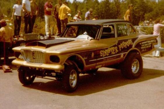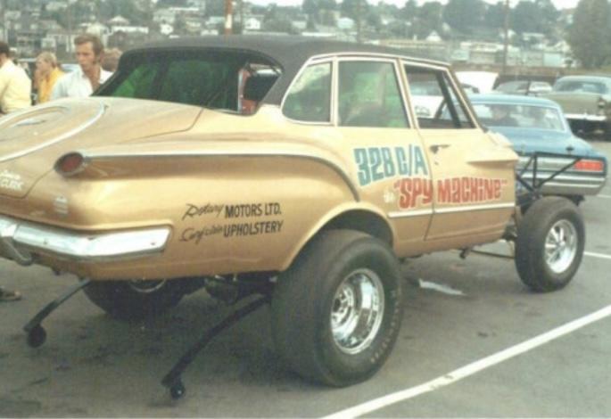 "The basis for "The Spy Machine" is a 1961 Valiant Signet.Both axles were moved forward,the front (solid) so that the curve of the fender touches behind the bumper,(one piece fiberglass front clip),the rear radius is larger and higher,the hood scoop was one off not from any car. First 2 photos taken @Mission,BC circa 1968.Friend & me (peace sign) at Van Isle Raceway (Vancouver Island) waiting to make a pass." Last edited by Mr70; 12-11-2024 at 12:47 AM. |