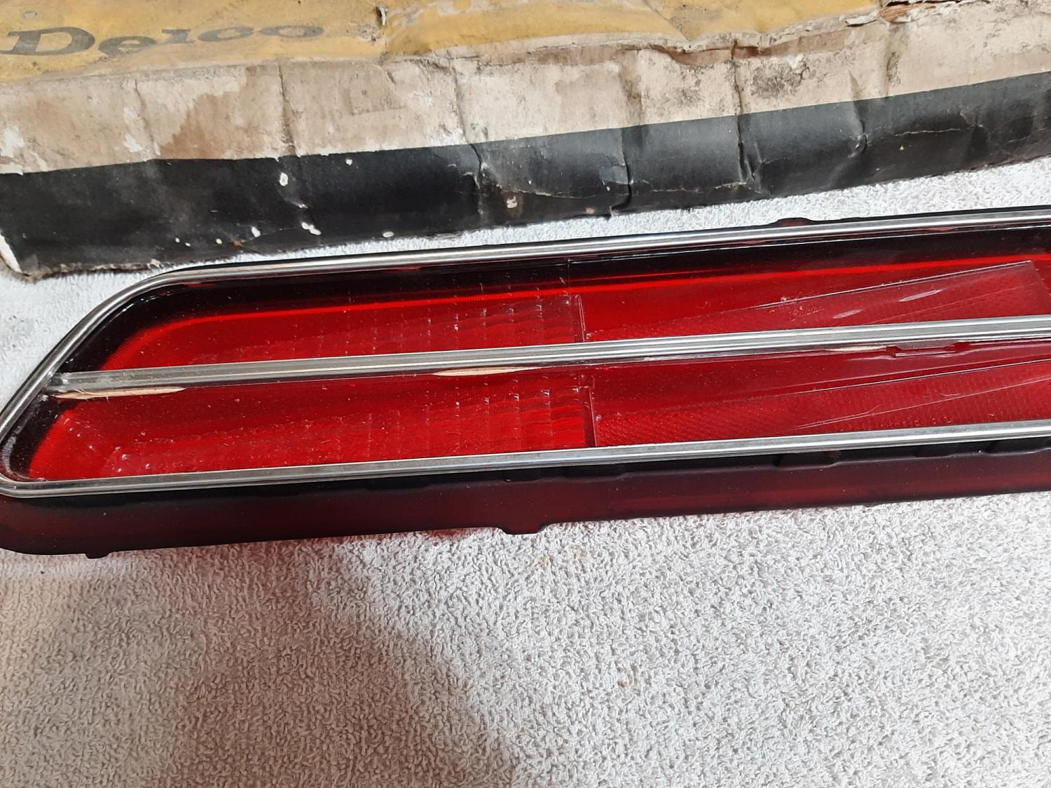 This is an NOS 1969 Camaro RH taillight lens GM# 5960963 . The box is damaged and I have not taken the lens out to inspect it. It does appear to have the stainless trim on the lens. I can remove the lens from the box if someone desires.