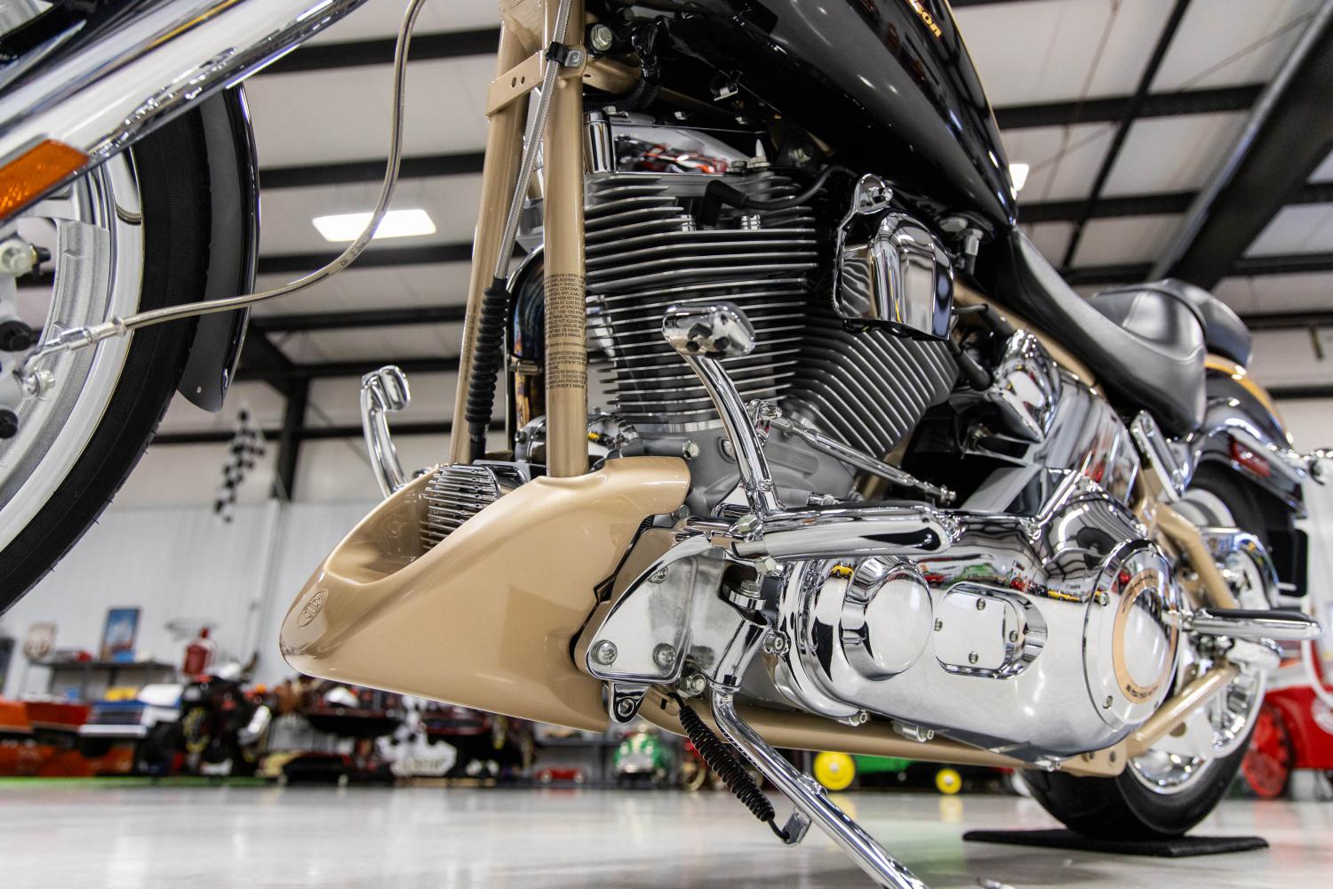 This magnificent 2003 Harley-Davidson CVO Softail Deuce 100th Anniversary Edition is new with 1 mile. Yes, it's new with 1 mile on the odometer! The CVO series was a family of factory made custom motorcycles introduced in 1999. The CVO line-up comprised special features not found on mass-produced models including Screamin' Eagle branded parts, hand-painted pinstripes, ostrich leather, gold leaf incorporated in the paint and many modern electric accessories. The 2003 Screamin' Eagle Deuce is the first Softail model to be the subject of a CVO project. Approximately 3,000 examples of were produced by The Motor Company's Custom Vehicle Operations division for the 100th anniversary. The bike had a Centennial Gold and Vivid Black paint scheme and color-matched frame. From the information gathered this one-owner example has never been ridden and was stored in a climate-controlled environment to preserve its commemorative luster. The original owner displayed the bike for 18 years before selling it to the second owner in 2021. The second owner also never rode the bike and stored it in a climate-controlled environment as a display piece. The second owner never marketed it for sale but offered it Marc Schiliro and he jumped on the opportunity. MS CLASSIC CARS purchased it in October of 2024 and December of 2024 is the first time it's been listed for sale. The original Gold Key package, keys and fobs, owner's manuals, mirrors and painted plastic trim are included. These items are pictured in the photo gallery. MS CLASSIC CARS installed a new Duracell Ultra battery on 12-06-2024.