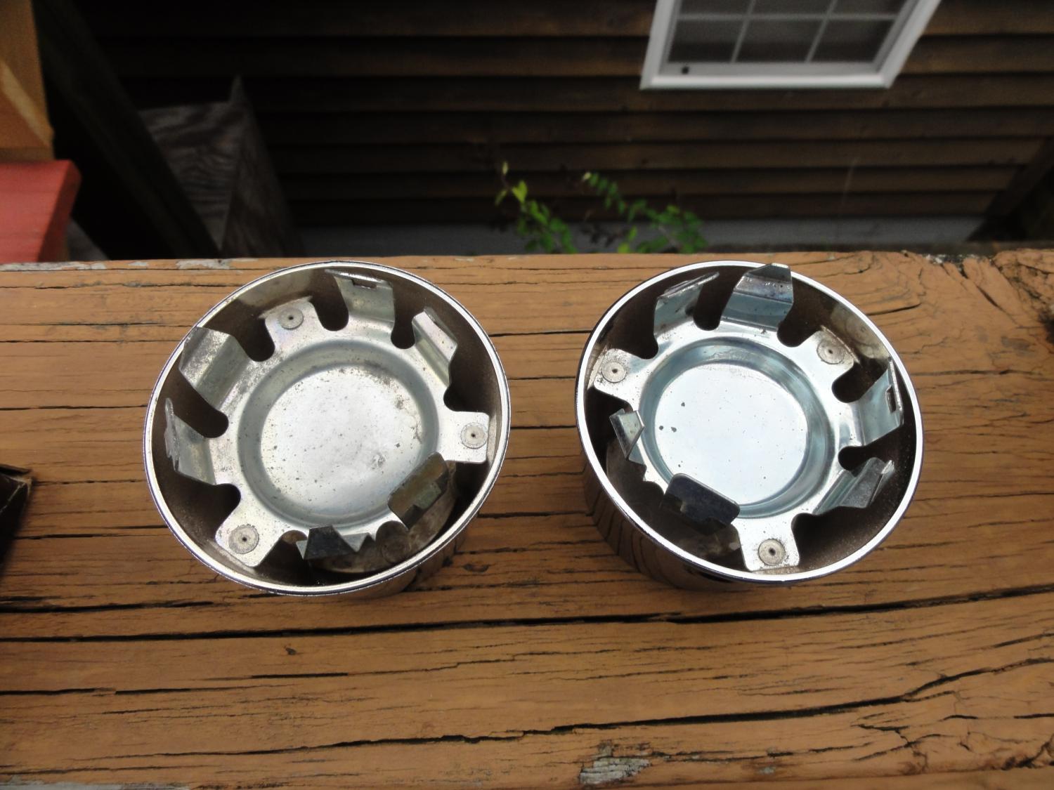 2 NOS Deep center Push on SS Caps. Part#3983323. NOS Condition. Chrome has Factory Flaws see pictures for condition. 400.00 Plus shipping