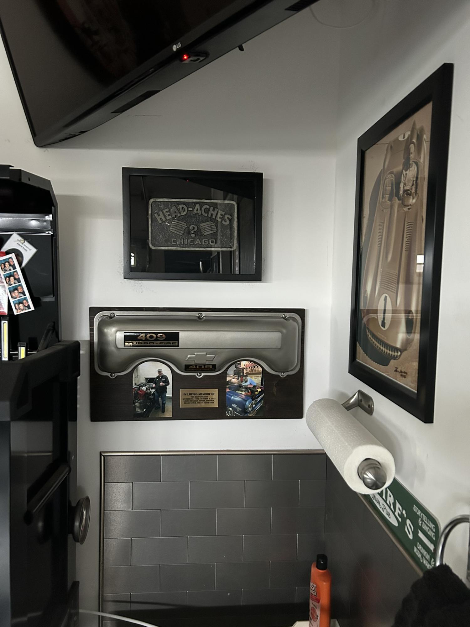 Thought some of you might enjoy a couple of Dad's old car club items that have managed to make it through the ages. His Head-Aches club jacket remains with the 409 (oil stains and all) and both Dave and I have Head-Aches license plates in our garages that Dad made in High School foundry shop class. I'm not sure is Cousin Eddie was a member or not. When I Google "Head Aches car club Chicago" nothing comes up......