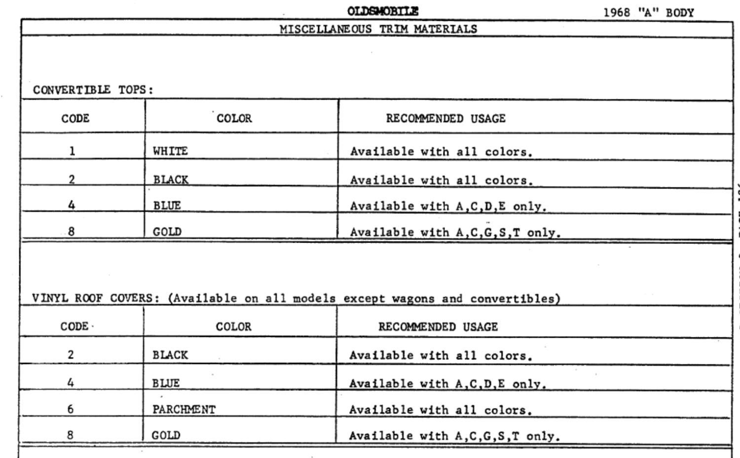 Background - A friend told me recently that his mom bought a 1968 442 new in yellow (saffron) with black interior and column shift (assuming auto). He said with white vinyl top but some research I did doesn’t really nail down what colors were available with what colors. I have NOT seen the car but his younger brother still has it after mom sold it and he bought it back years later.
