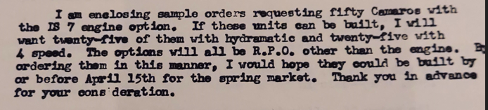 This is from a letter to John De Lorean February 20, 1970.