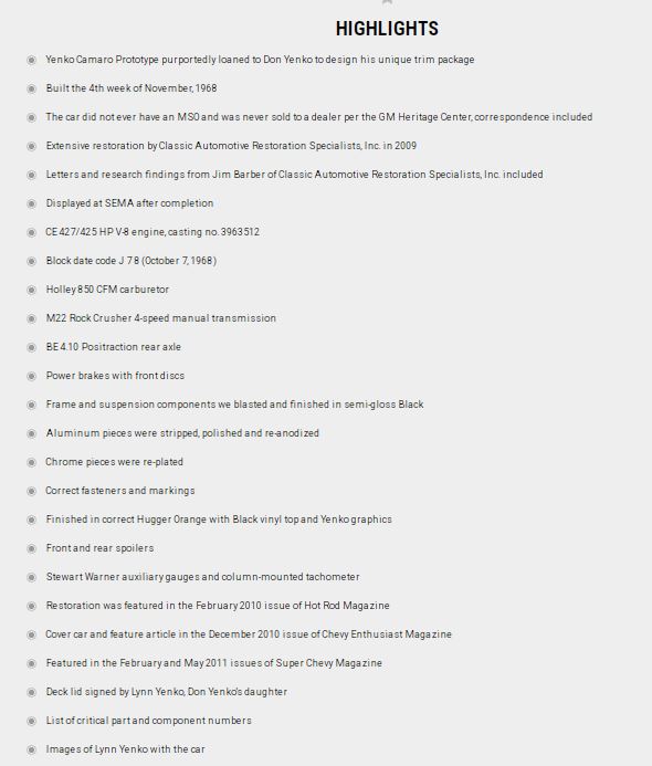 It wont be the first made up fake "prototype" Yenko sold at Auction.