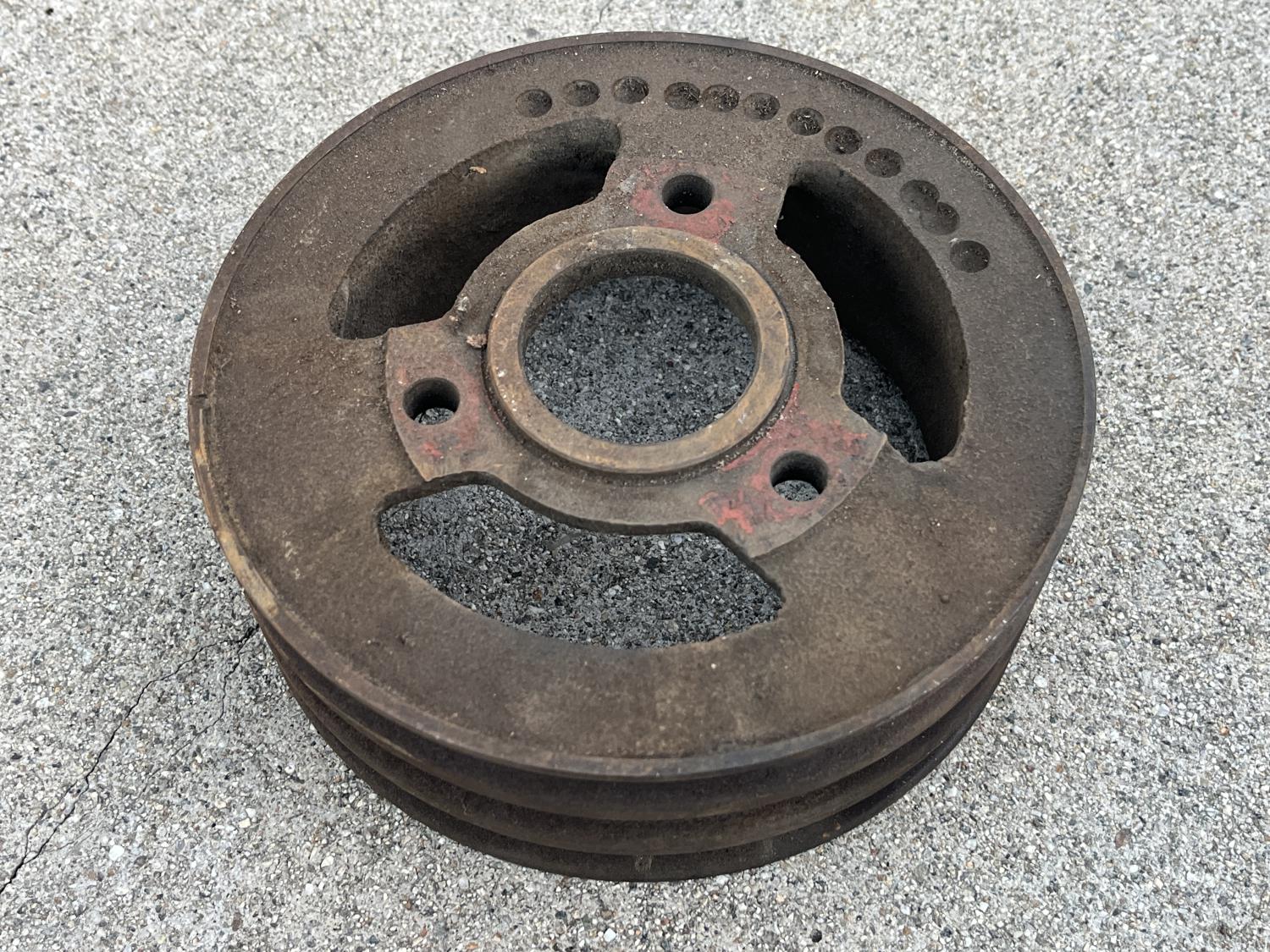 I have another rare 65-68 solid lifter Deep Groove big block BBC crank pulley available here; three grooves, cast iron, heavy. Part number 3869978 BO - original, not a repop or OTC replacement - genuine as leather. Assembly line piece IMHO. Very rare piece. As found condition, not cleaned or fluffed. Several photos below. Cheers all, Anthony |