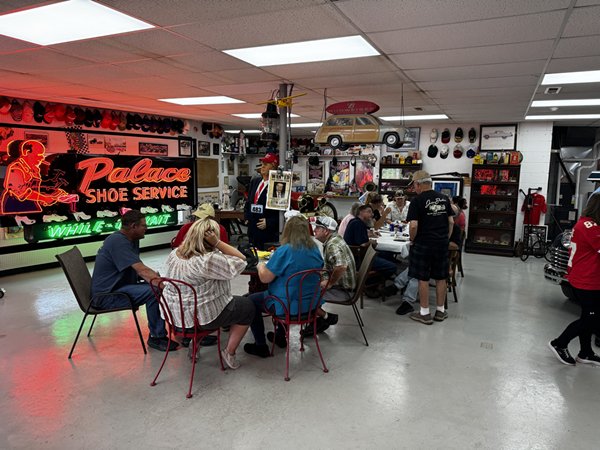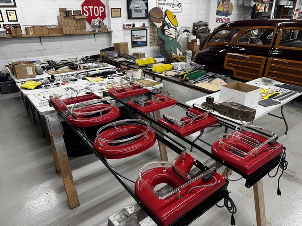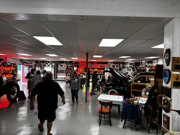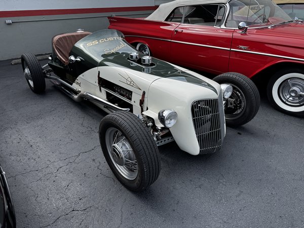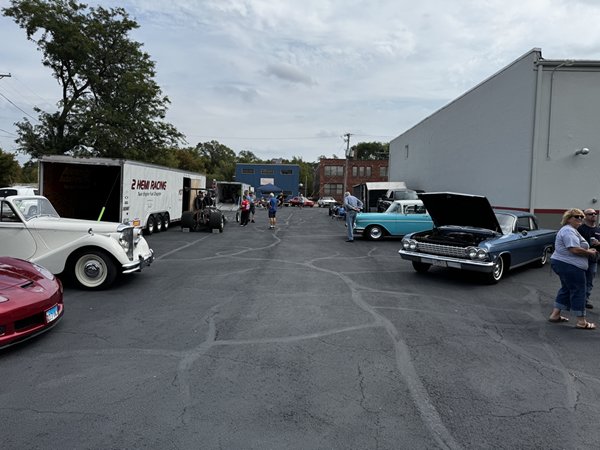 The 409 was invited to a friends private show today at their shop in Rockford. Very eclectic mix of cars from brass era stuff (the shop where this was held specialized in these at one time), to old nitro rail cars (they fired all of them up), to 60's muscle, some modern stuff and a Ferrari. They had an open house to show off their shop and what they are currently working on (hobbyists). One of the owners of the shop is into old neon signs and as old time businesses close around here he buys and restores the neon signs. The blue Nova is owned by the same guy and is an amazing original paint/interior/engine compartment survivor 350/3 speed. The Marmon inside that has the transaxle out of it is still toured regularly by its 88 year old owner - he broke it a few weeks ago on a local tour. The same guy drives his early 60's Pontiac convertible to Florida every fall........lots of cool stories.