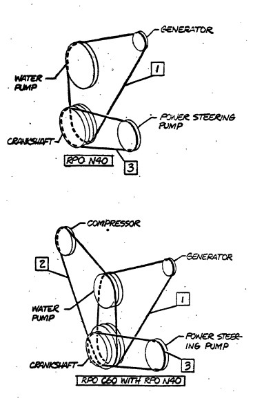 1st groove- Alt n water pump Center groove- water pump only Third groove- power steering
