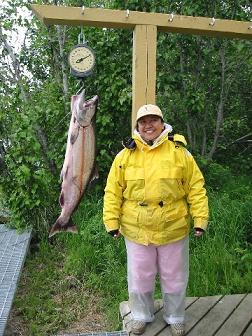 Boy, that is a huge one! [img]/ubbthreads/images/graemlins/biggthumpup.gif[/img] Nope, King crab aren't as heavy in comparison to King Salmon. I'll see if I can find some King Crab when you guys come to Seattle.