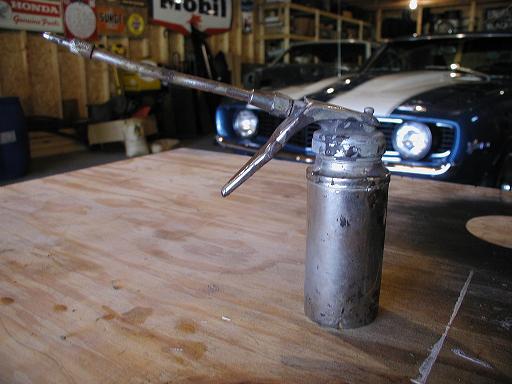 well if its an oiler, theres not oil inside. perhaps it didnt contain the caulking used on the majority of the car but maybe a specialty caulk or lubricant of some kind? the outlet hole is small. while inspecting the door jambs of the chevelle i noticed a bead of somthing that could have been caulk about the same size as the outlet hole on the canister. just my observation