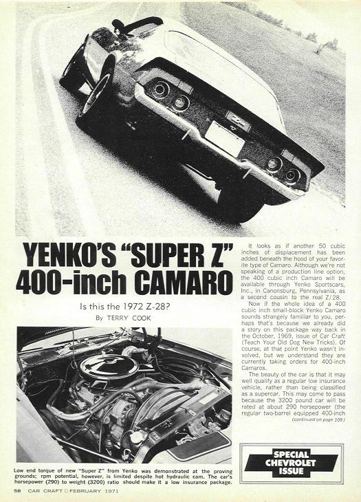 I believe it was a COPO prototype that got the axe. Another one of Yenko's good ideas that didn't happen.