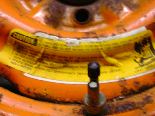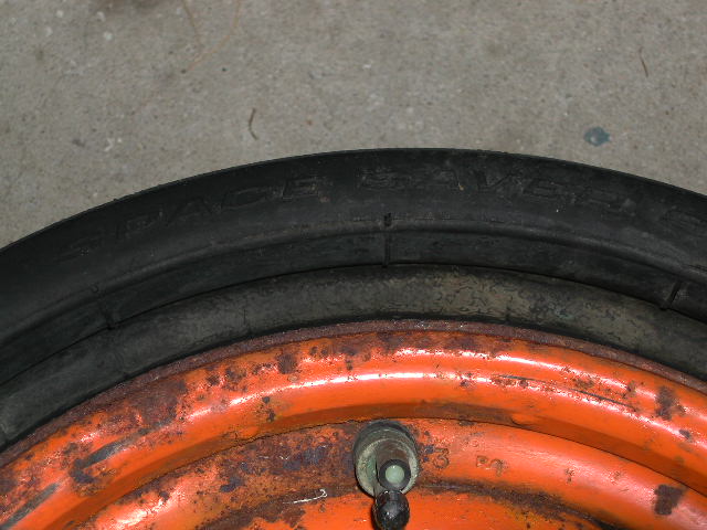 I figured somebody in the know could tell something from that valve stem, among other things. I checked the lug holes and have 4 1/2 from center to center. The rim looks the same as some plain 14x6's I have laying around from a 71 Malibu. If it comes down to it I guess I could mount the tire on one of them. Steve, (question about the gray painted 68 rim you refer to)Is it the same color gray used on the 68 jack base? I currently have a full size rally with a 1970 tiger-paw in the trunk. Not sure which I would prefer, as the spare was missing when I got the car, and the original owner didn't remember what it had. I guess I have blinders on...when it comes to anything but GM and Chevrolet, as I never even considered that space savers came in fords or mopars ![]()
