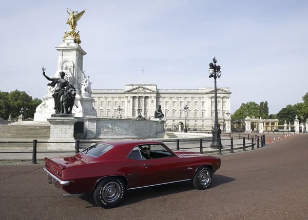 We are having a run of nice dry sunny weather, so I had the COPO delivered from its garage on Saturday morning. I decided that my son Max (3.5 yrs) was due his first COPO ride. I lucked out because I got down to the area around Buckingham Palace just before they closed the streets for some kind of ceremony or other. Normally you can't stop anywhere near the Palace and the Mall (the main ceremonial boulevard that leads from the Palace to Trafalgar Square) is full of traffic.