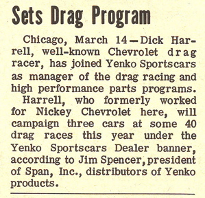 I saw this article and thought it looked like something that should be posted here. This states when Harrell joined up with Yenko. Did he join with Yenko because of the cutbacks in the Nickey racing programs?