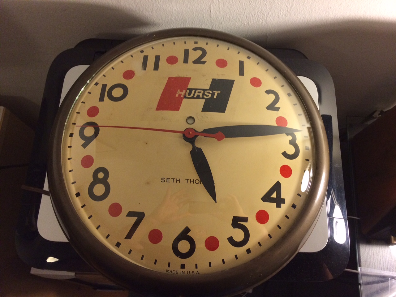 If I understood what I read on line correctly the patent was issued between 1949-1950 but only means this type of movement got it's patent from that date until the next patent change and was good for many years. It is also pre 1982 as they moved to Norcross, GA that year. All I can find using other ST office clocks for a comparison, the Hurst logo and some other details, I come up with mid to late 60's but cannot narrow it down to a specific year. There are enough numbers on the back that one of them should be some sort of date stamp but if it is I cannot find it on the net.